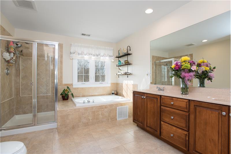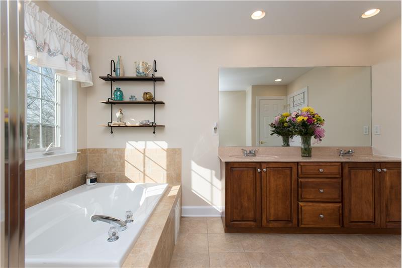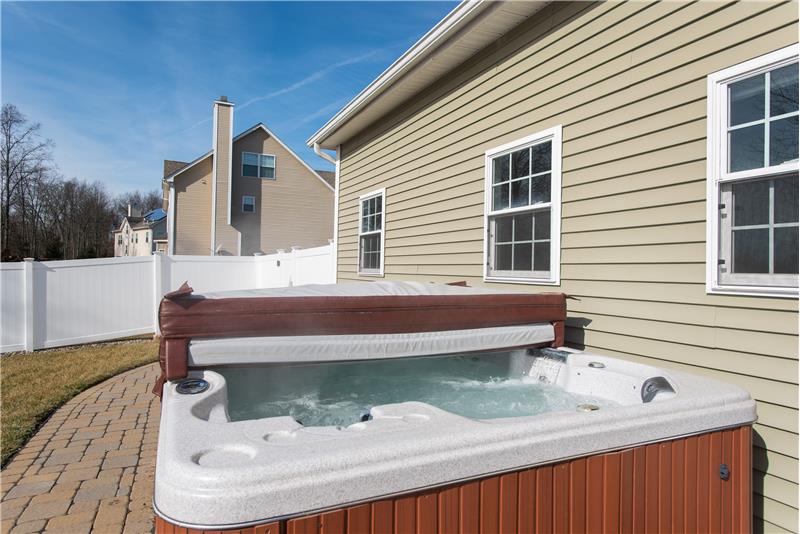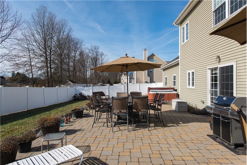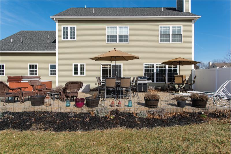 Elegant classic colonial in perfect, move-in condition. Impressive 2-story foyer w/wood floors. Private, fenced back yard, expansive paver patio and hot tub. 9 ft. ceilings on first floor provide an open and airy ambience. Kitchen features a center island, wood floors, and stainless steel appliances. Highly-desirable floorplan: eat-in kitchen with generous breakfast area opens to family room with gas fireplace. Ample storage, including two kitchen pantries, utility room, large laundry room, and a spacious and convenient storage room above garage. Excellent location!
