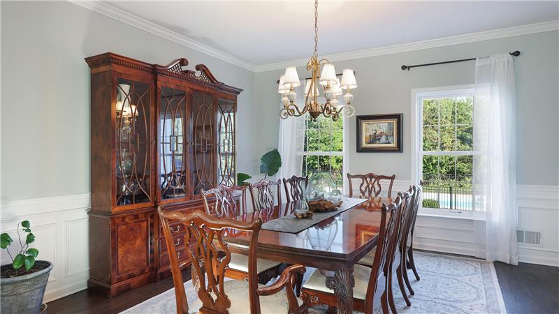 Luxurious features abound inside and out of this spectacular 4/5-bedroom, 2.5-bath home in Hillsborough's prestigious Steeplechase Manor. The exterior impresses immediately with a 3-car garage, professional landscaping, and a mature, tree-lined property. Inside, the dramatic 2-story foyer showcases shadow box trim, a wrought iron baluster staircase, hardwood flooring throughout the first floor and 3 out of the 4 bedrooms on the second, and abundant natural light. The spacious kitchen offers a 2-tier island, granite countertops, natural stone backsplash, desk and breakfast areas, and a 5-b ...