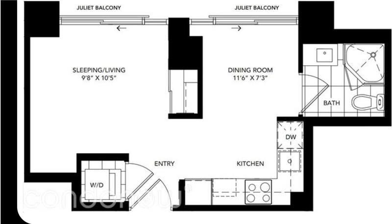 Beautiful Clean Modern Unit! 10' Ceilings! Feels Huge! Ensuite Washer/Dryer! Easy Walk Up! 2 Romeo And Juliette Balconies! Lots Of Light!.