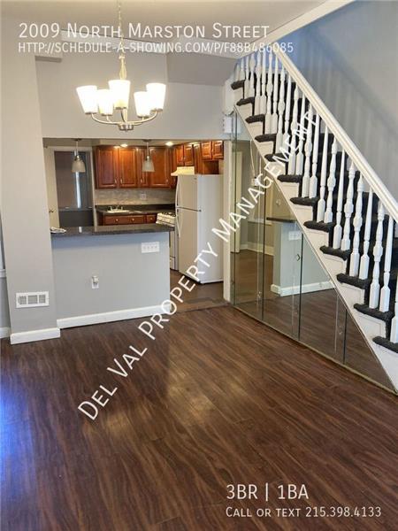 • Rent has Been Improved! • Attractive Row Home For Rent – 2009 North Marston Street, Philadelphia, PA 19121 – Five minutes from Fairmount Park! • $1,215 / month plus utilities • 3 Bedrooms • 1 Bathroom • Accepting 3-Bdrm Section 8 Housing Voucher • Modern kitchen comes equipped with New Refrigerator and Gas Oven! • Laminate Hardwood Floors & energy-efficient Ceiling Fans throughout • For More Information, please see the Description Page!