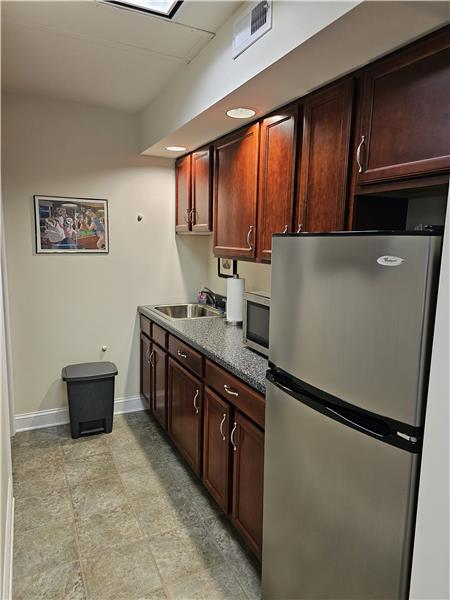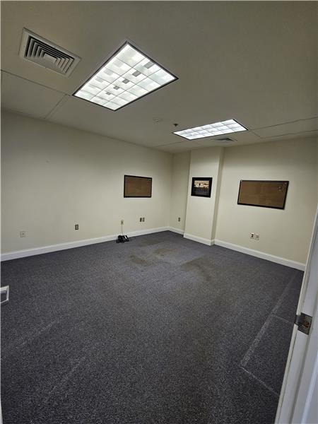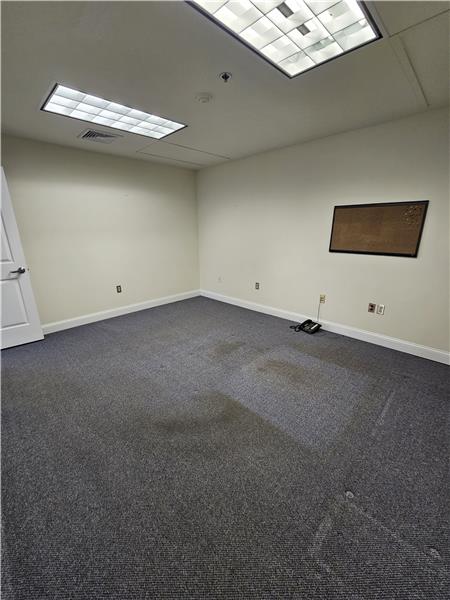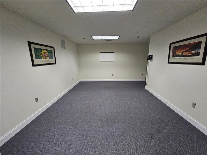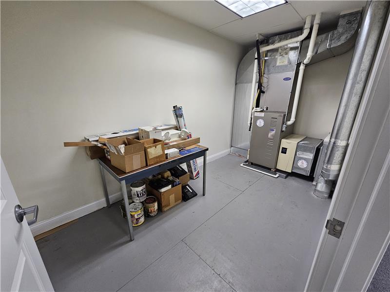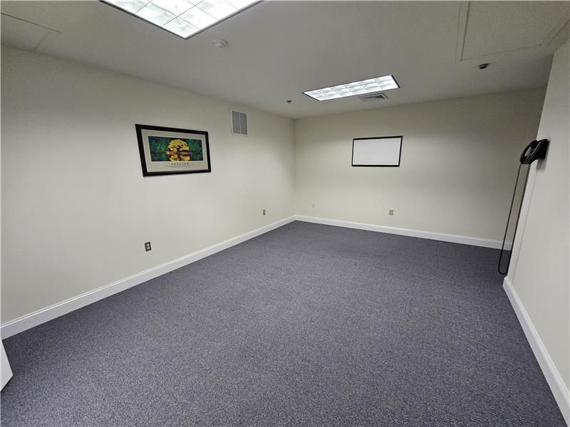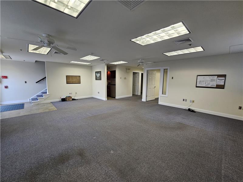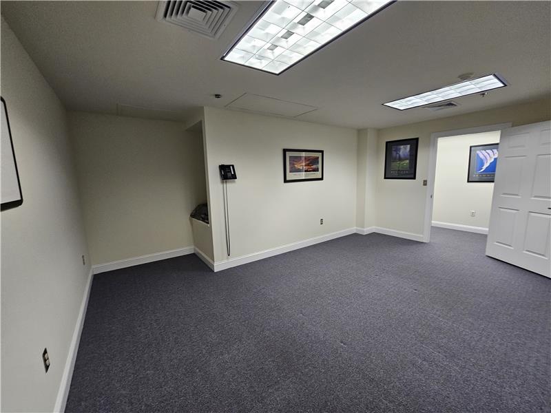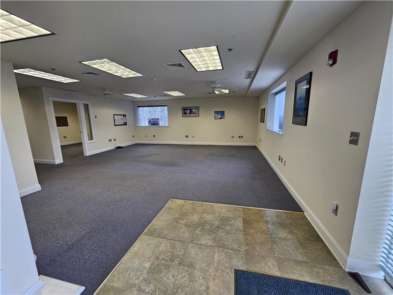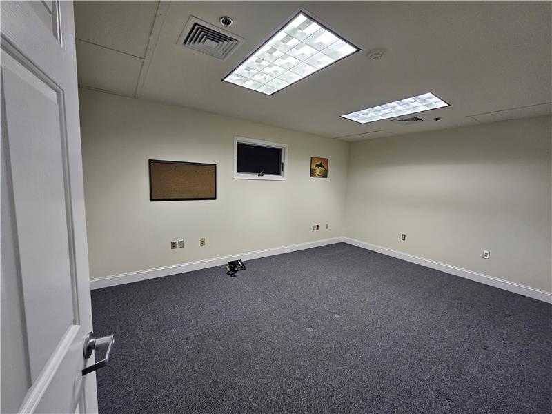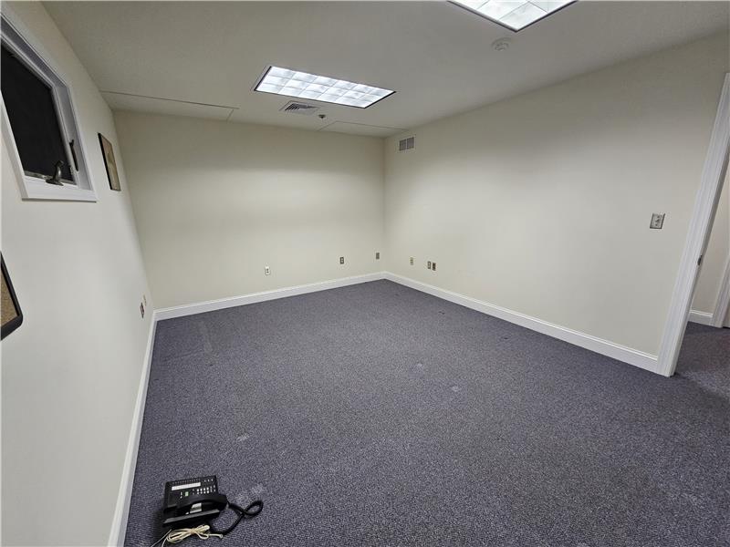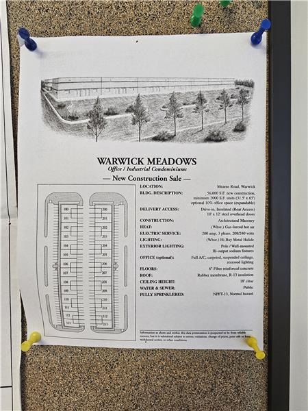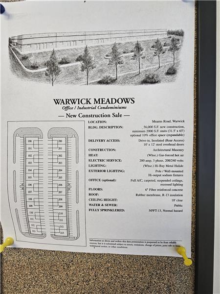Warwick Meadows Unit 201 corner building with plenty of natural light on first floor. Yes there is a second floor as well. This unit is fit out very nicely with 2,000 sq ft of office space and 1,000 sq ft of warehouse space. First floor has 1,000 sq ft of office with a huge open area for multiple desks, large bathroom, document room and small kitchen. Second floor features a large conference room, and two additionally large offices. HVAC room on second floor. All office space has gas hot air heat with central air conditioning. Note all red outlets are dedicated electrical circuits for com ...