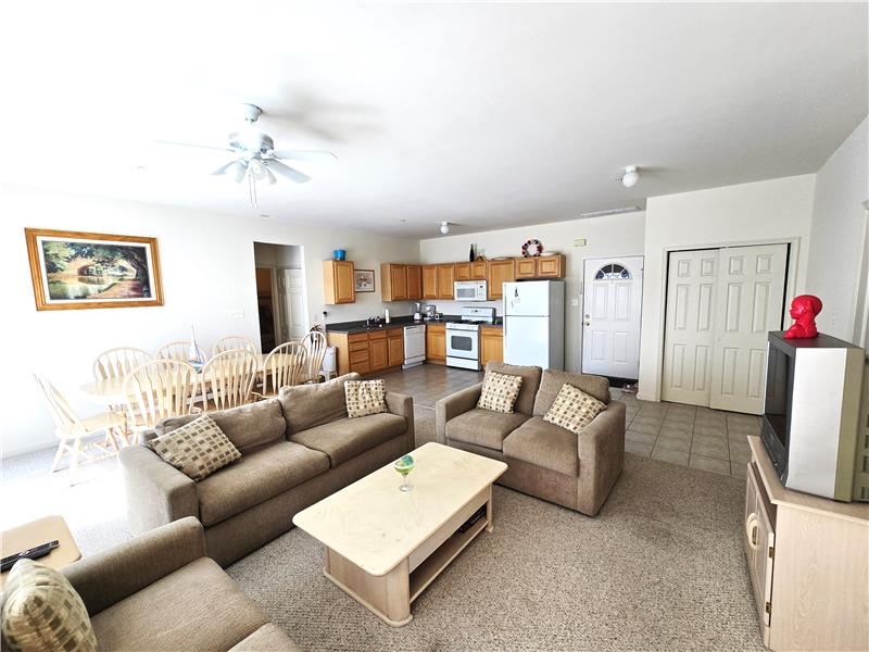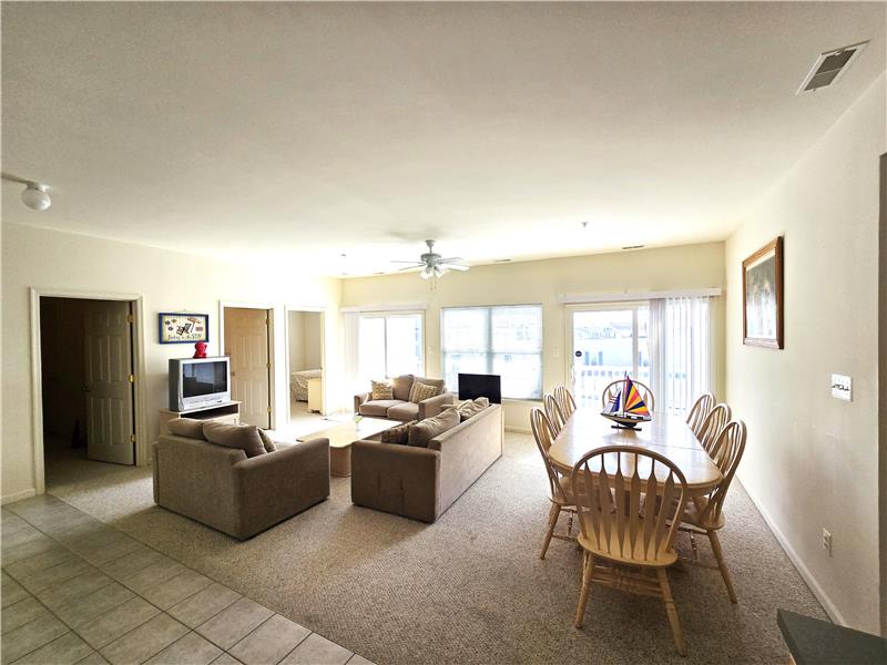 WILDWOOD-BEACH-BOARDWALK is this spacious 4 Bedroom, top floor condo with a large Balcony to watch the weekly Fireworks! Just 2 Blocks to the Beach! Park in the garage and never have to take the car anywhere! Walk to restaurants, bars, Fox Park and the Convention Center. Split Floor Plan with 2 bedrooms at each end of a huge Great Room in the middle combining Living, Dining and Kitchen with 2 sets of sliders to the Balcony comprising a full window wall letting in plenty of Sunshine! Open Floor plan makes entertaining easy. There is a Laundry Closet conveniently located by the guest bedrooms. A
