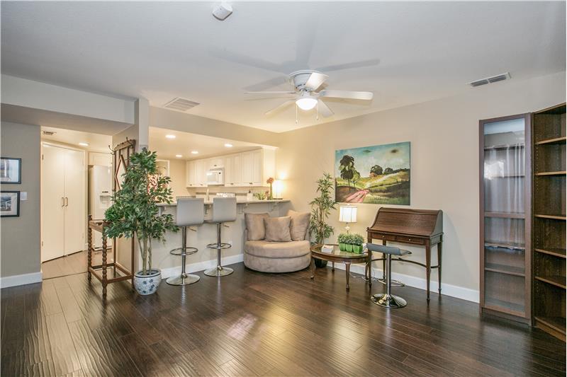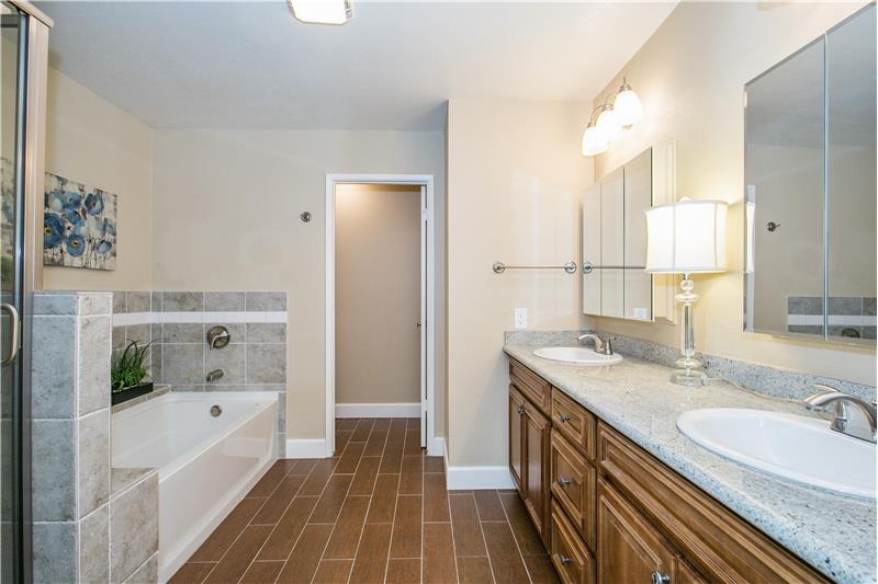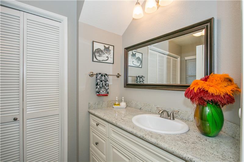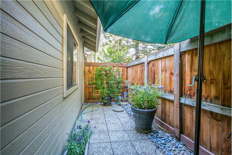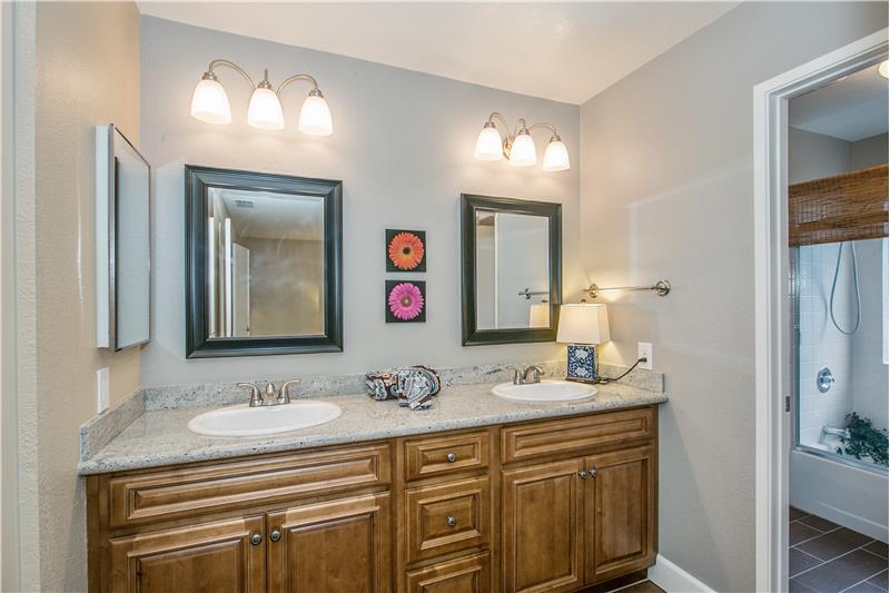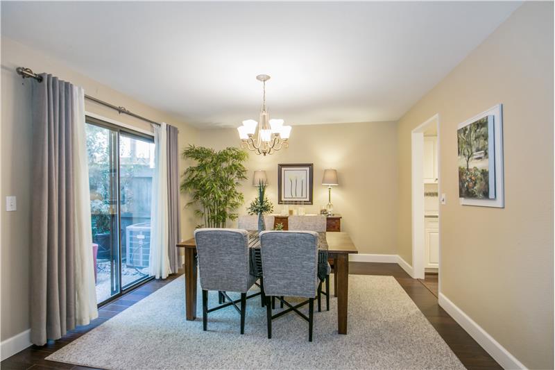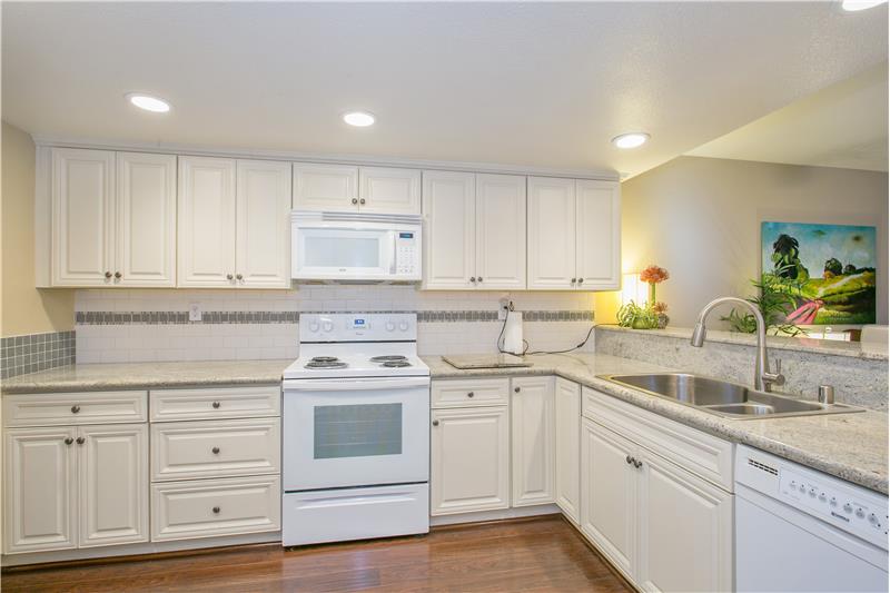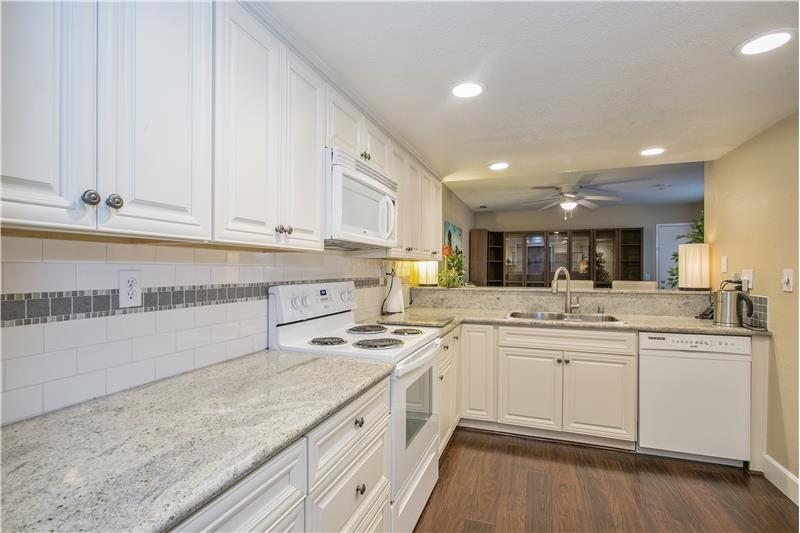 Spacious, elegant floor plan with soaring ceilings in living room. Cozy patio with access to greenbelt. Granite counters in updated kitchen and baths. Large master with great storage. Quiet and peaceful.
