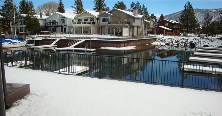 On property boat dock included. This turnkey townhouse has 3 spacious master bedrooms. Bedroom 2 has a large balcony overlooking the water & Heavenly Mountain. Downstairs includes one of the master bedrooms, a tile kitchen with breakfast bar and a large living room with floor to ceiling stone wood burning fireplace. All this space overlooks the water. It has new plush carpet throughout and has been freshly painted. Step off your wood deck onto the grass and open the gate to your own private dock, load your boat and enjoy the day. The HOA also includes a private beach, park, pools, tennis and m