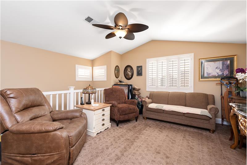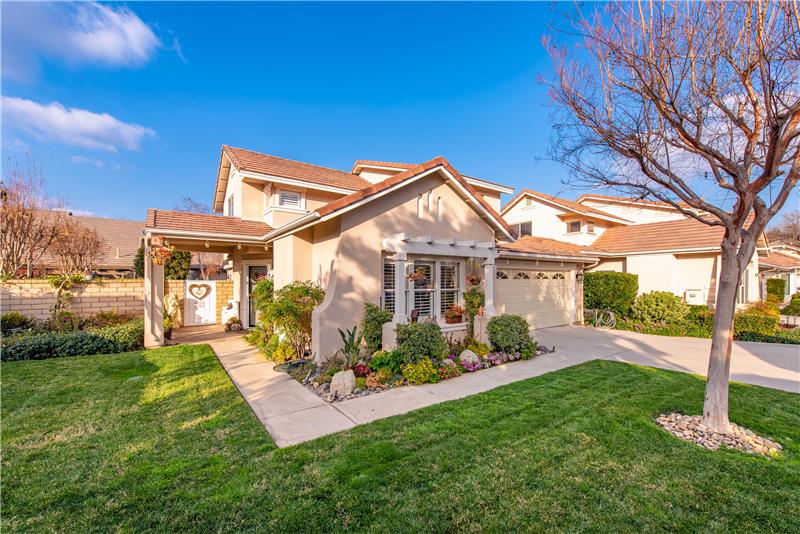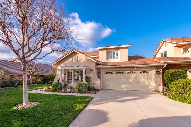 Welcome to Casa Flores, a highly desirable 55+ gated community offering a vibrant lifestyle with scenic walking paths, mature trees, and resort-style amenities, including a refreshing pool and spa. Nestled in a cul-de-sac, this spacious 2-bedroom, 2.5-bathroom home features 1,669 sq. ft. of thoughtfully designed living space, a versatile loft, a direct-access 2-car garage with built-in cabinetry and sitting on a prime 5663 sq. ft. lot. Step inside to a bright and inviting interior, where newer carpet, wide baseboards, and upgraded wood-look ceramic tile flooring create a fresh and modern feel.