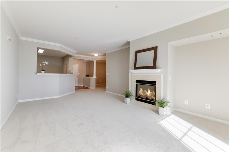 Spacious 2 bedroom, 2 bath condo in Central Parke at Lowes Island. Fresh paint and new carpet throughout. Upgraded hickory cabinets, corian countertops, and lighting in kitchen. Open floor plan with formal dining room and living room w/ gas fireplace. Primary suite offers sitting room with access to balcony. Luxury primary bath features upgraded tile and fixtures. 2nd bedroom offers walk-in closet with custom shelving. Private balcony with view of trees. Oversized handicap accessible garage with driveway space. 55+ community.