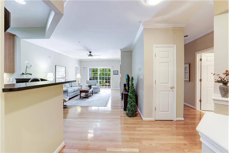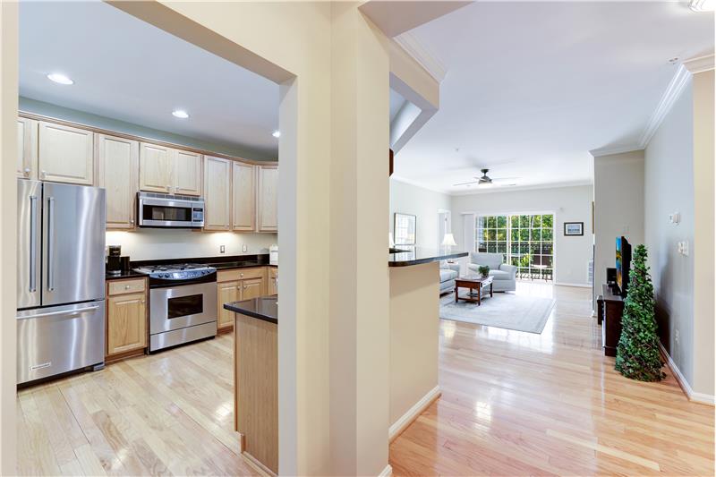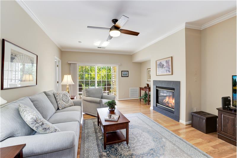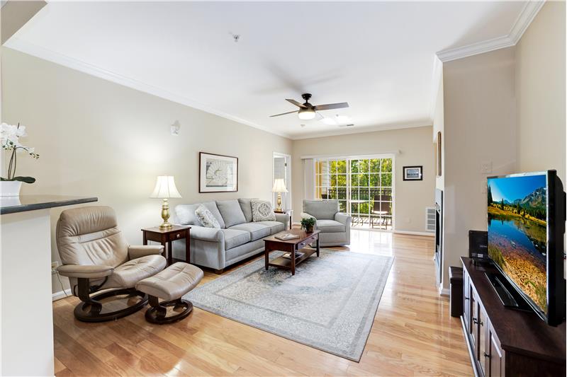 Open House Saturday 7/27/21 from 1-4. Highly desirable top floor unit backing to wooded tree lined vistas! Beautifully updated 2 bedroom 2 bath condo in Central Parke 55+ community. Spacious kitchen with high-end stainless steel appliances and granite countertops. Gleaming hardwood floors in living room, dining room, and kitchen. Master suite with sitting room and access to balcony. 1 car private garage with bonus storage area. Upgraded energy efficient HVAC boiler system. Private balcony with view of trees. OLREA
