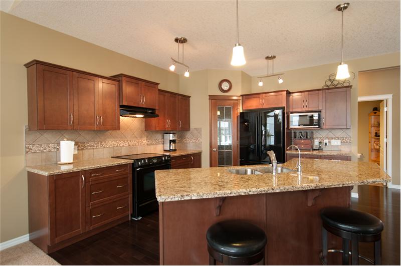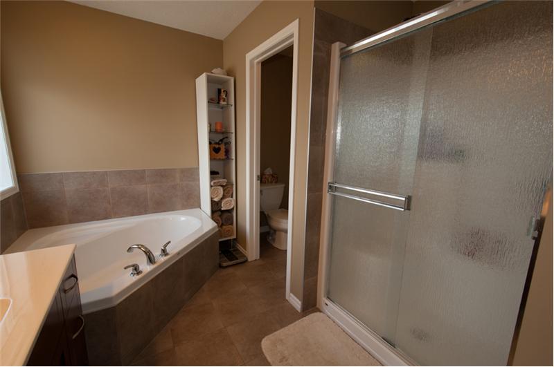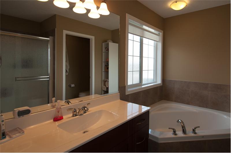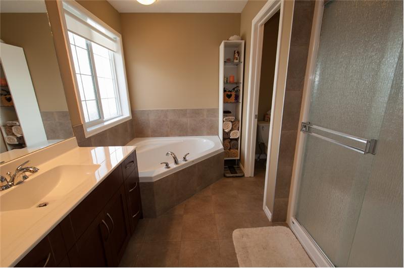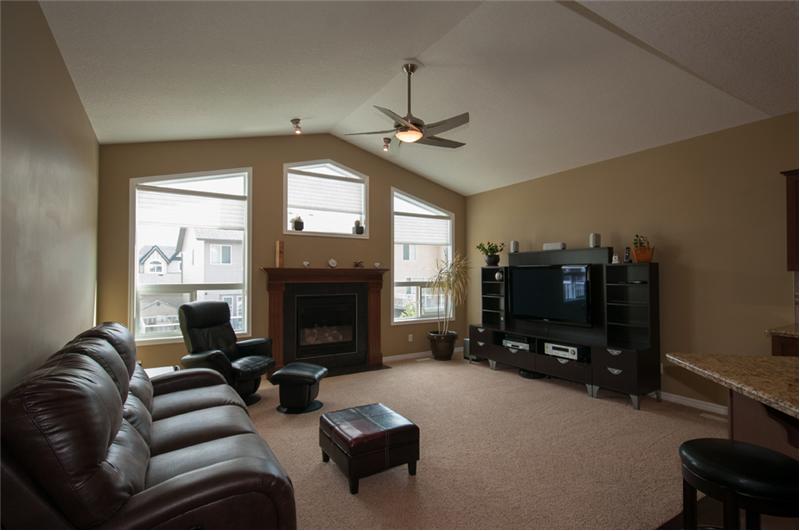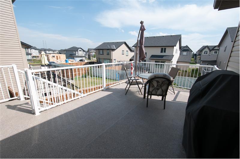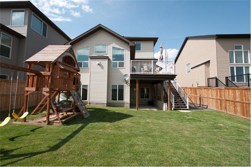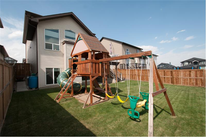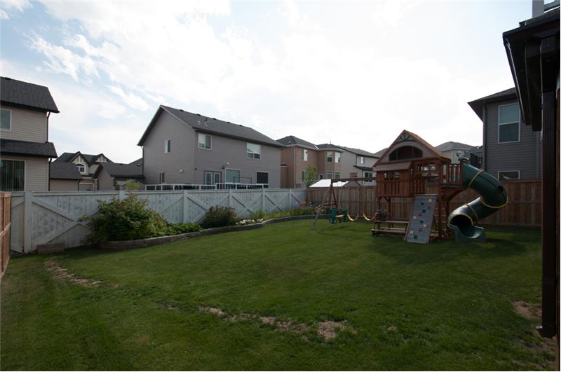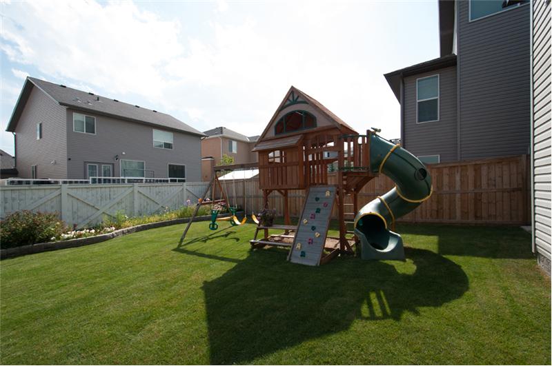 Got kids? This home was built for a family to enjoy. Very spacious open plan looks out over the back yard. Which is fully fenced, landscaped and comes with an awesome play centre. The kitchen has light coloured granite counters, a large island and a corner pantry. The nook is spacious and bright. There is a main floor den with door that closes, a laundry room and a 2 piece bath. The home has a large deck that has duradeck and aluminum railing with stairs to the back yard. Upstairs there are 3 bedrooms, the master has a 4 piece en-suite with an 60 x 60 soaker tub and a 48 x 36' separat
