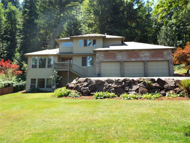 VIEW VIEW VIEW! Serene & Peaceful living among nature & wildlife. Bright Formal Living & Dining areas, French Doors, HUGE Deck. Great room w UPDATED Kit, granite, Ctr Isl, SS Appliances & Eating Nook, Wood Fireplace. Hardwoods. Custom Stairs. HUGE Master Ste w 5 piece bath, Granite, luscious Soaking Tub, Walk-In. Bonus Rm down. Mature Terraced Landscaping w Sprinkler. Brick BBQ. Hot tub. Close to Squak-Cougar-Tiger Mt Hiking Trails. Built the sturdy old fashioned way w 2x6 construction. 20 min to Bellevue & SeaTac, 15 to Renton.