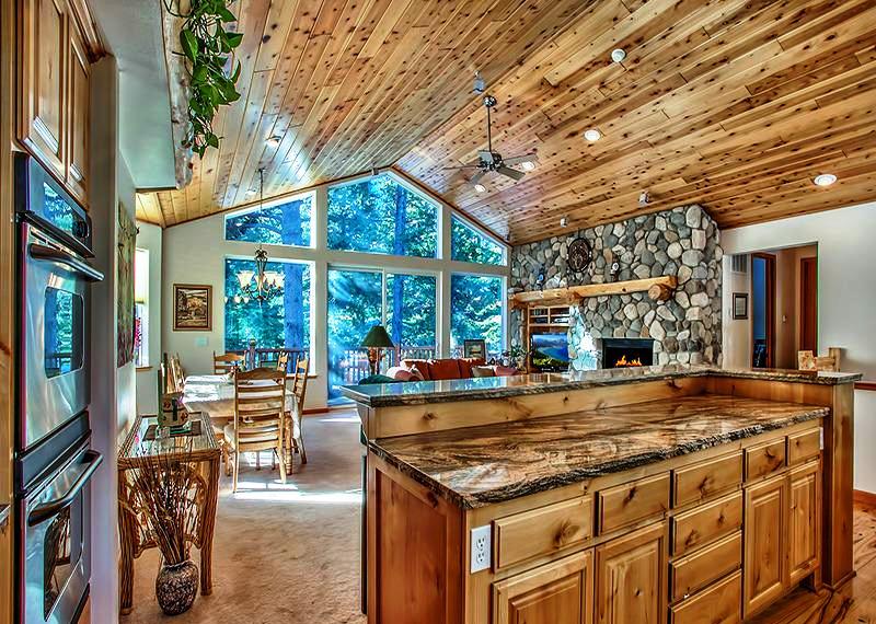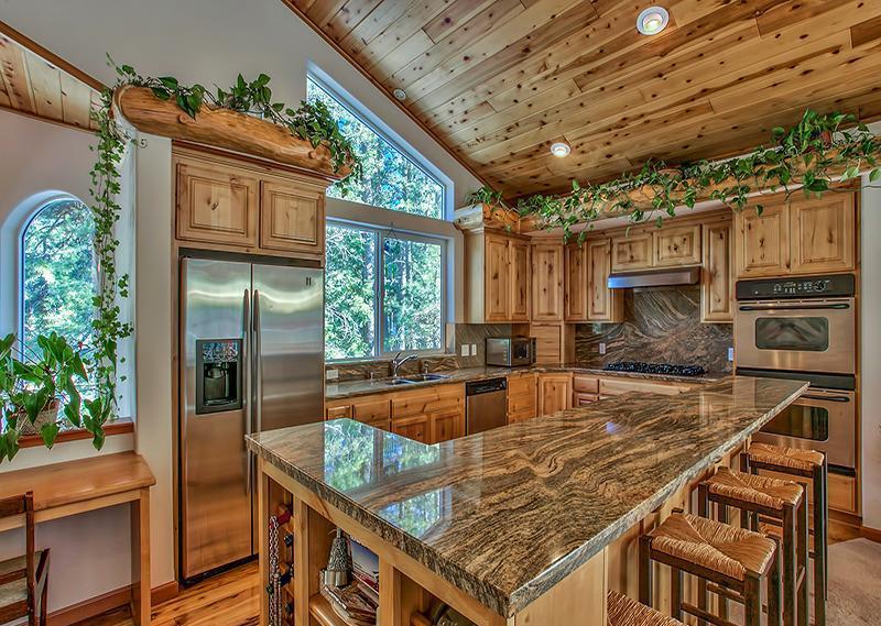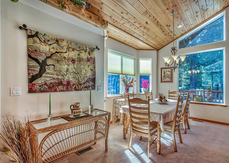 Sunny and quiet, this gorgeous custom mountain style family home is in an awesome neighborhood. Oaxaco is a cul-du-sac street where you can enjoy walking to the Upper Truckee River and where the neighbors will tell you This Is the Best - Right Here!'' Beautiful exteriors with Cedar siding and tremendous curb appeal. Spacious entry flows right into the Great Room where you are filled with the warmth that comes from great design, wood finishes, a granite kitchen, river-rock fireplace and a wall of windows with forest views. Dream master suite with a fireplace between the master and the master ba