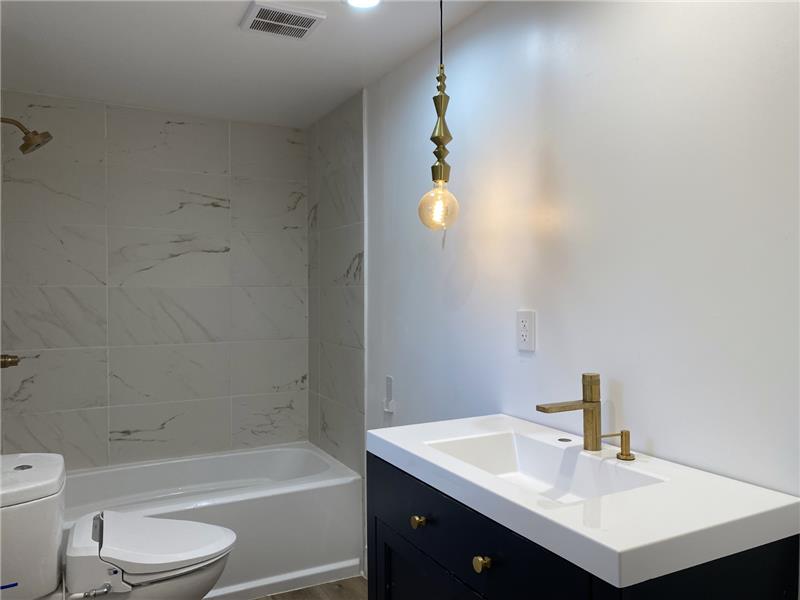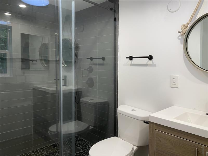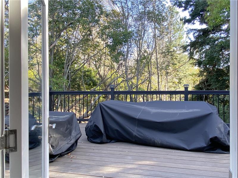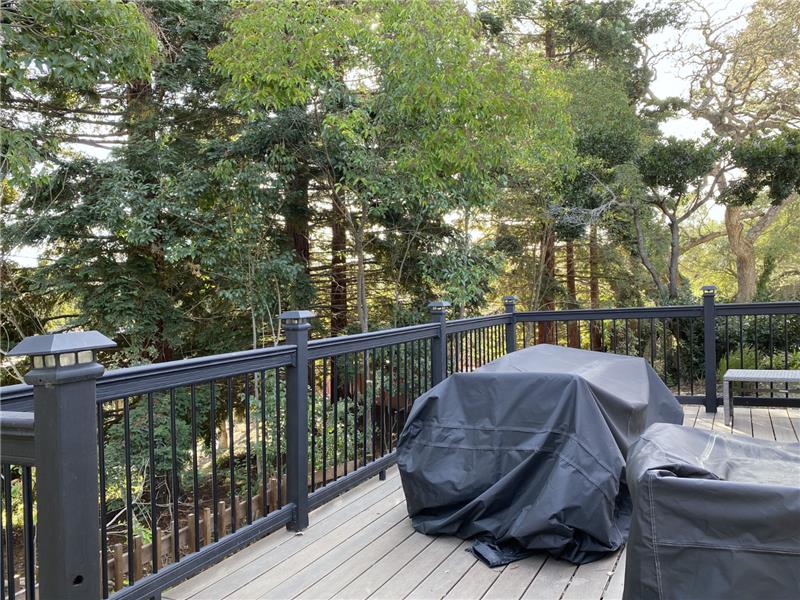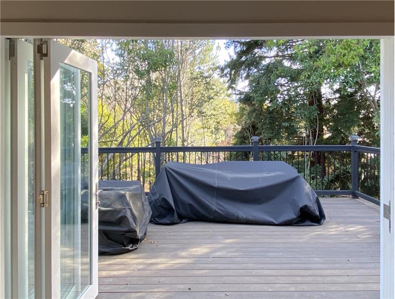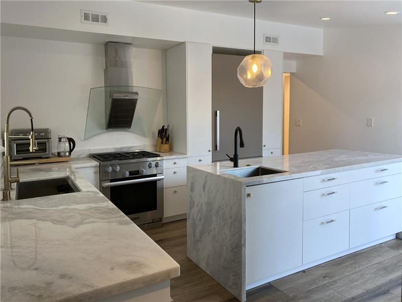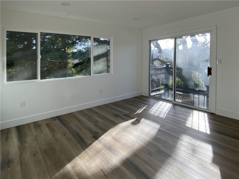 Best top of the hill location & utmost privacy! 3 bedrooms, including the luxurious master suite with tree-top views. All bedrooms have their own private full baths! [3 Bedrooms and 3 1/2 baths total] The Kitchen with ”breakfast bar,” features custom cabinetry & stainless style high end appliances, make it a real "Chef's delight". The open combination living and dining rooms feature beautiful wood style floors, with bifold glass doors opening to a private and picturesque deck setting, providing a perfect balance of indoor & outdoor living. See DESCRIPTION LINK for full details.