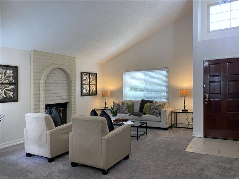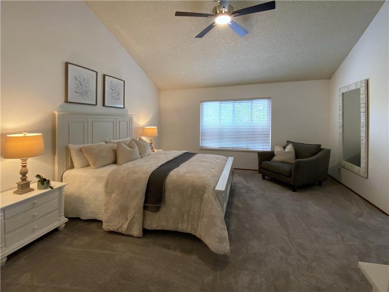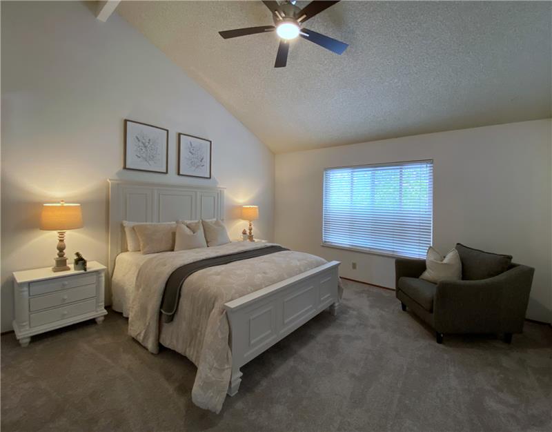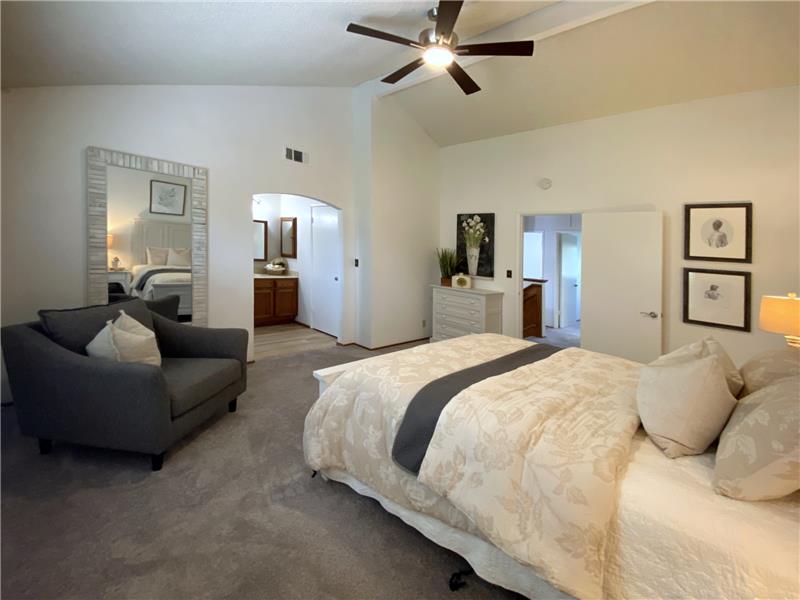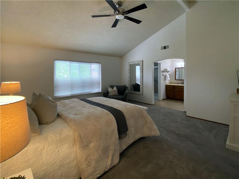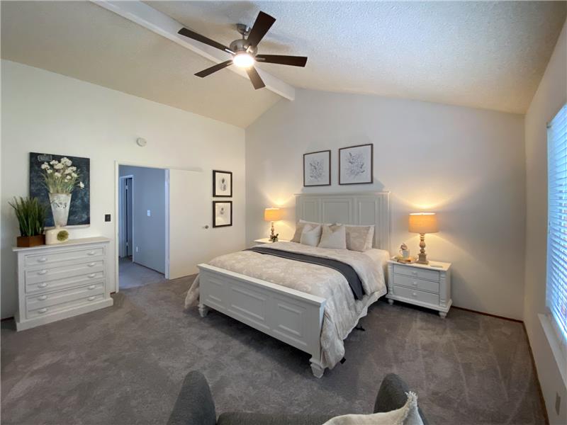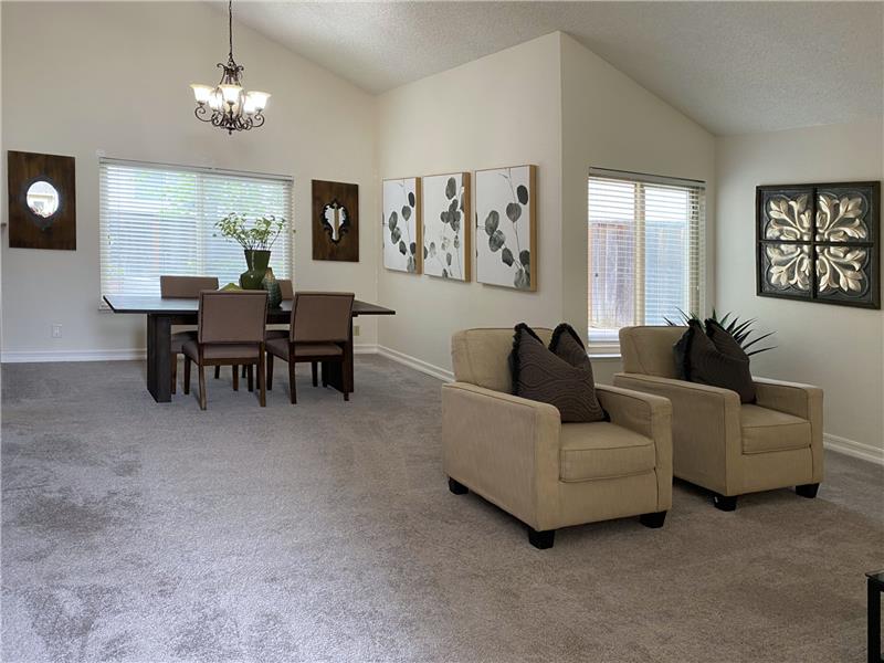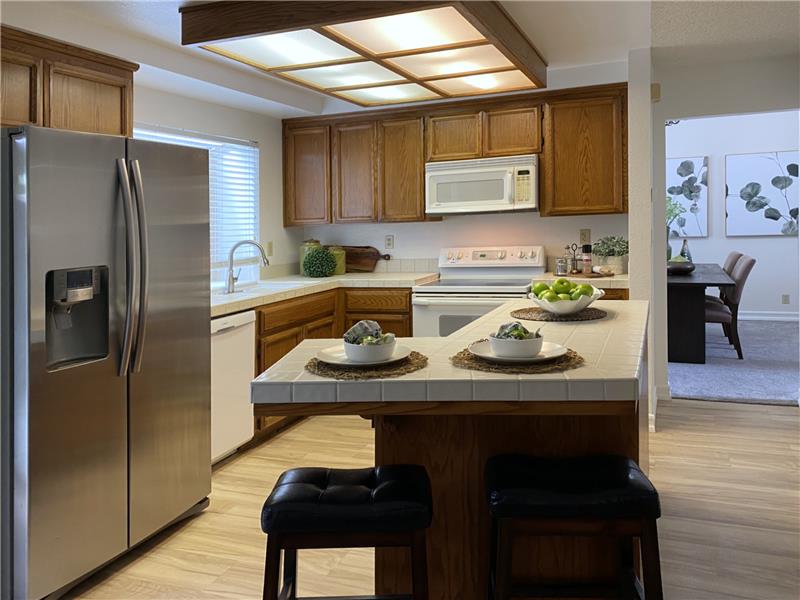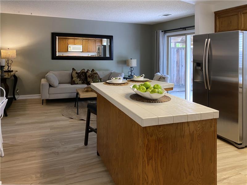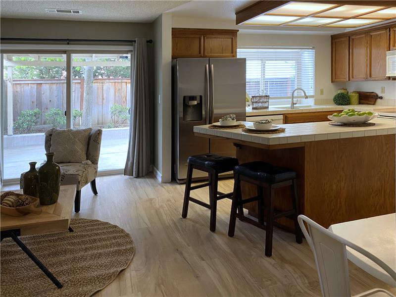 "Diablo View" area - Situated on a quiet court. The vaulted ceilings and window orientation provide an abundance of light throughout. Spacious living room w/vaulted ceilings & fireplace as a central focal point. The open-concept kitchen seamlessly flows into the family room, with slider door access to covered back patio. Both the kitchen & family rooms have beautiful newly installed wood style easy maintenance plank flooring. Upstairs, the spacious master suite awaits, complete with a walk-in closet for ample storage. Dual-pane windows throughout. Inside Laundry room. * NEW ROOF & GUTTERS *