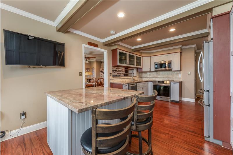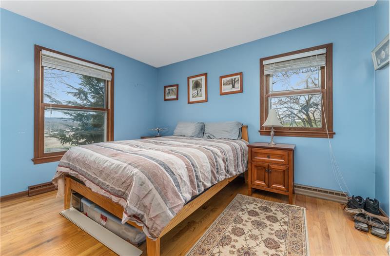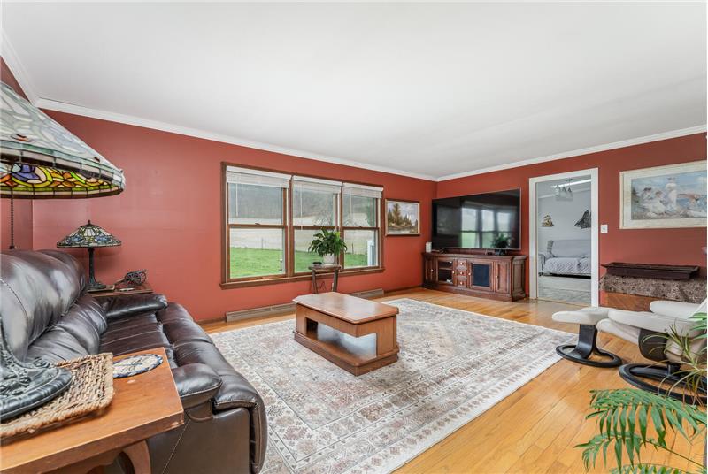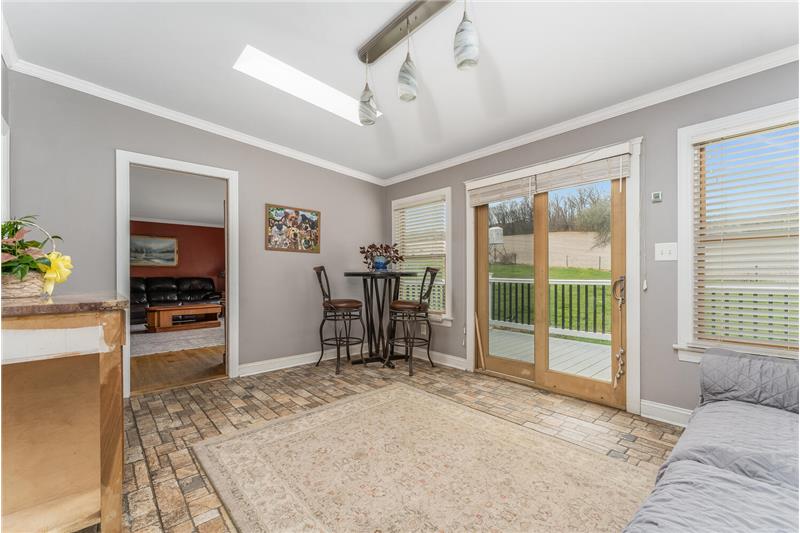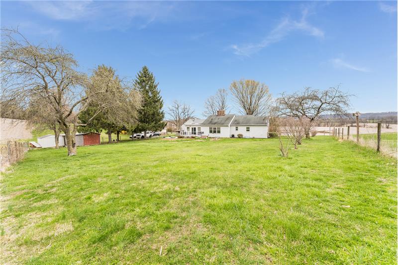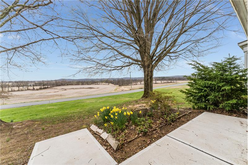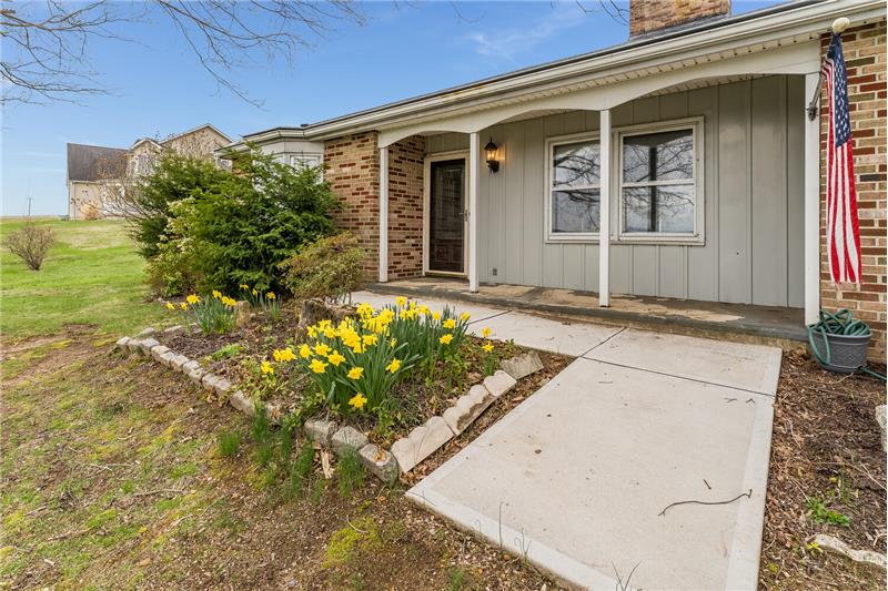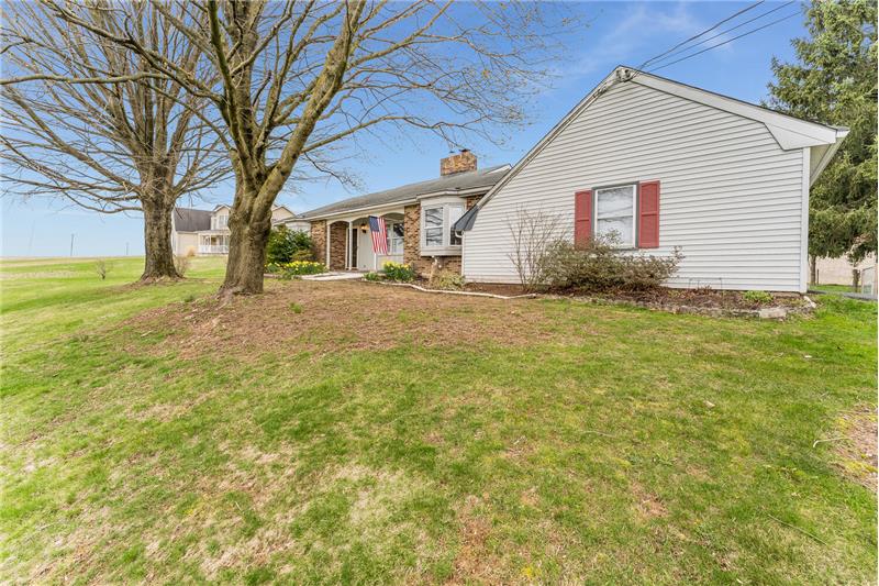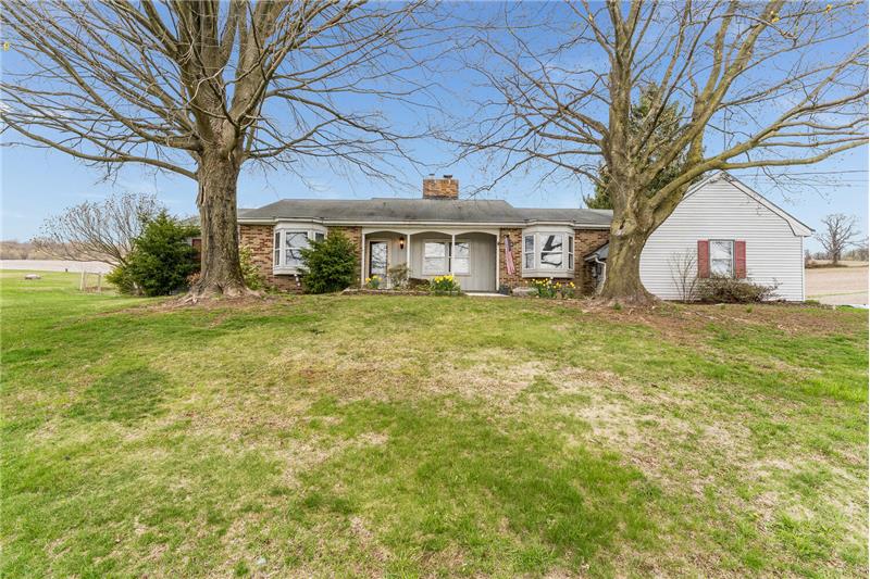 Classic Sterling Homes ranch offers peaceful privacy with a convenient one-level floorplan. This well-constructed home sits atop a gentle rise, with views of surrounding countryside & farmland. Renovated kitchen features granite counters, an island with seating & stainless steel appliances. Wall of custom cabinets provides plenty of storage. Wood floors & brick hearth fireplace add to the country charm. Updated bathrooms, two-car garage, full basement. Cheerful sun room connects to the deck & patio. Fenced back yard. Listen to nothing but the singing birds and let this home be your escape!