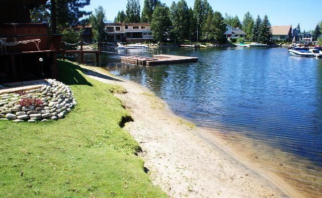 Cul-du-sac parcel with water views looking down the main channel and with over 110 feet on the water and your own fun sandy little beach. The awesome remodel includes windows, doors, siding, custom/custom throughout - kitchen, baths, lighting, air in the bedrooms, vaulted beamed ceilings and on and on. Gorgeous lawn and landscaping with a water feature. Outstanding short sale opportunity for the patient quality conscious buyer. Sold AS IS.