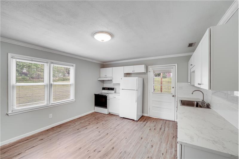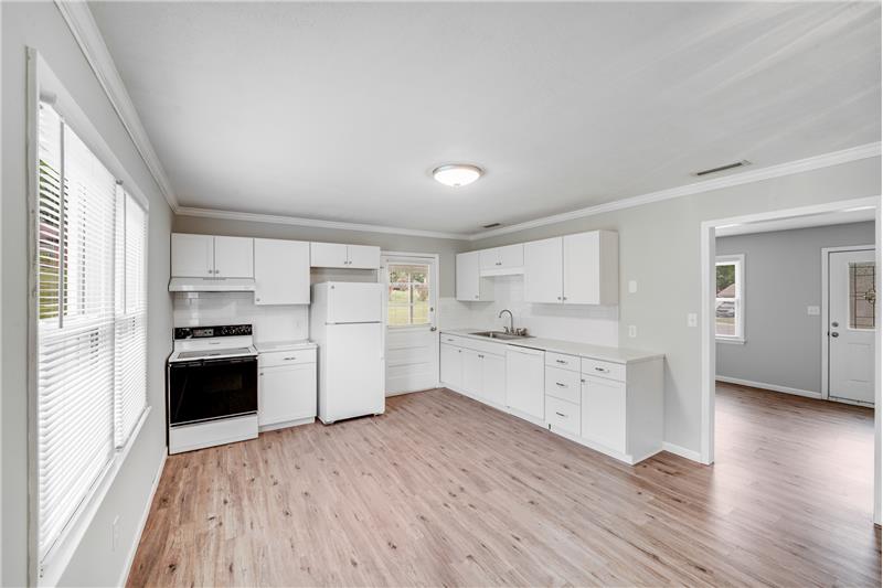 Welcome to this charming 3 beds, 1.5 baths home filled with natural light and modern finishes. As you step inside, you'll immediately notice the stunning sun-filled windows that create a warm and inviting atmosphere throughout the home. With vinyl plank flooring throughout, this home offers both style and durability. The kitchen is a true highlight, equipped with appliances, and featuring sleek white cabinetry, a spacious countertop, and a stylish white tile backsplash that adds a touch of elegance. Text "Valleybrook218" to 704-870-2369.