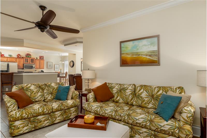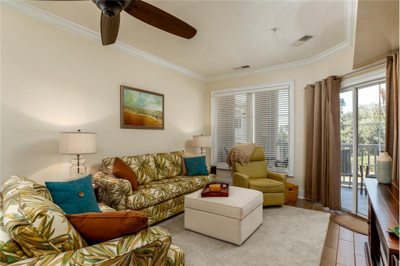 Meticulous end unit in gated Edgewater community. Location,location,location and the most privacy you have seen on this end building.Three bedrooms and two baths Tuscany floor plan with huge closets throughout including the pantry in the kitchen and all customized hall closets.Additional hallway conditioned storage closet steps from your front door. Ceiling fans throughout. Custom unit with upgrades of tile in living/dining area. Garage with extra storage for your golf cart below. Addtional parking in the front and the side of this building. Waterway clubhouse,pool,hot tub,grills