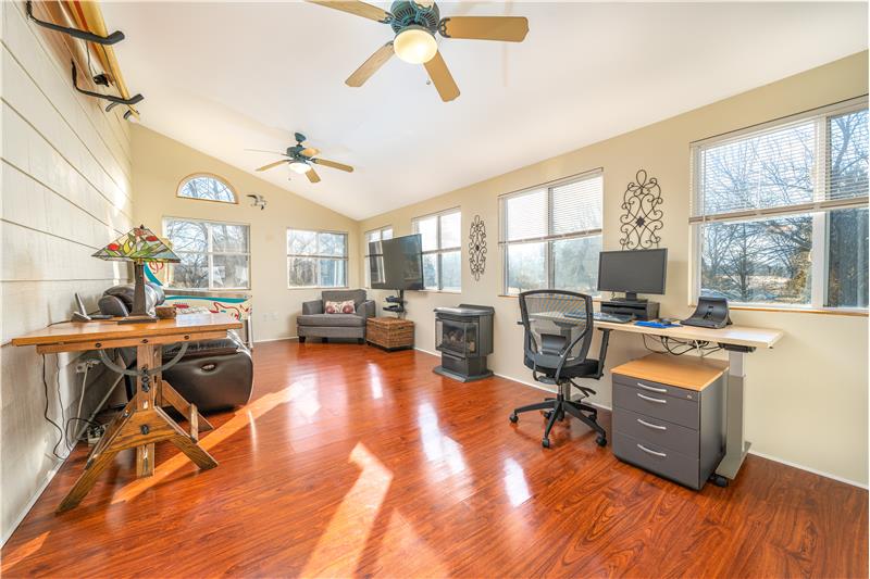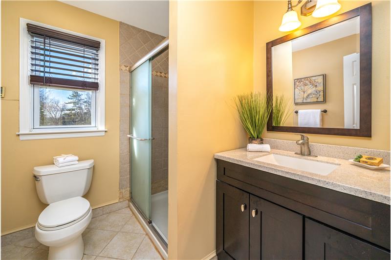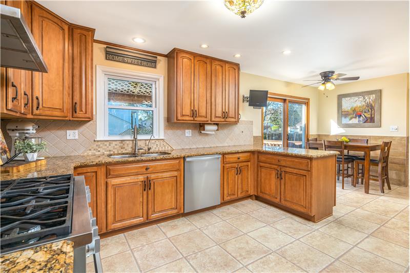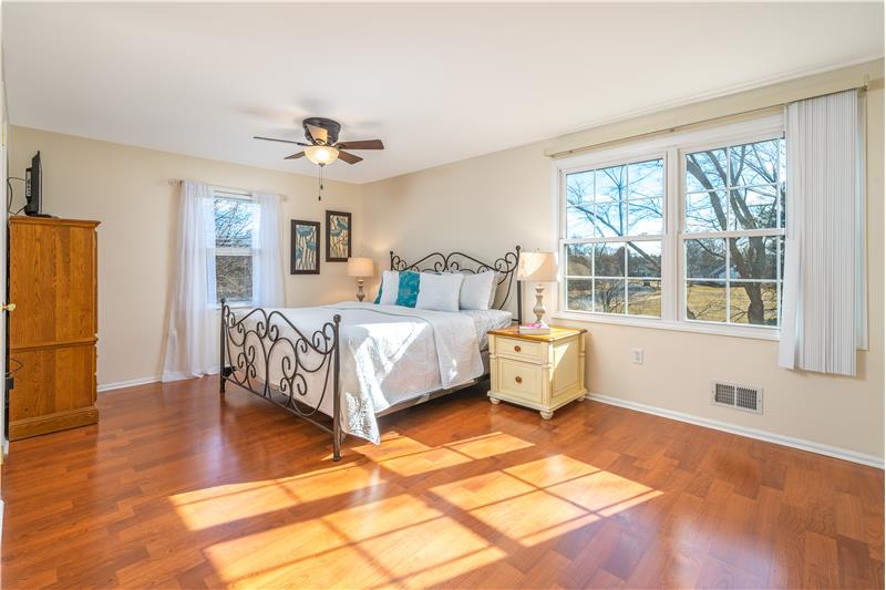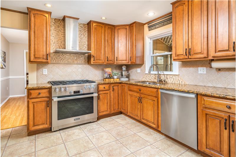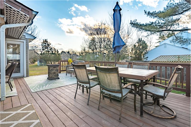 Sensational 4 Bedroom 2.5 Bathroom colonial in Fox Chase. High-end renovated Kitchen (8 years) with all Miele stainless steel appliances including Built-in Coffee Maker! Also included is a vented cooktop, 42" cabinets, and granite countertops. Sunlit 3 Season Room flows from the Dining Room and is surrounded by 3 sides of windows, has a vaulted ceiling and ventless fireplace. The back yard is a great space for entertaining with a partially covered 2-tier deck, a tiki bar and access to walking/bike path around the pond. Upstairs are 4 Bedrooms all with laminate flooring.