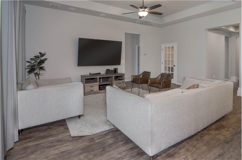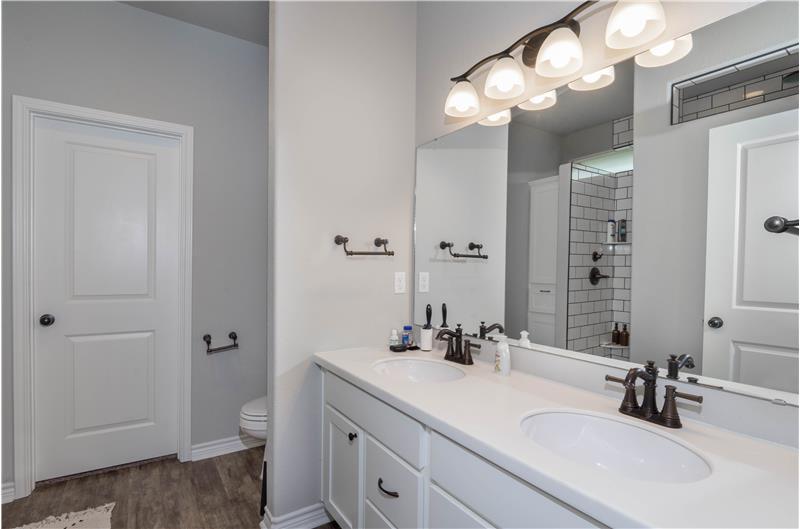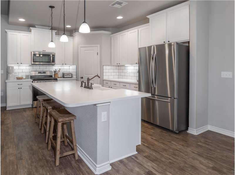 Why wait for a house to be built and worry about the builder raising the price or canceling to contract right before closing? This house has been lived in for less than a year and has been well cared for. It features split bedrooms, a nice pocket office off the living perfect for Zoom meeting or doing homework, a nice mud room off the garage, and a nice foyer with raised ceilings. The kitchen opens to the living room and has a nice large quartz island perfect for guests while entertaining. There is also a gas stove, tons of counter space, and a nice contemporary theme that extends into the liv