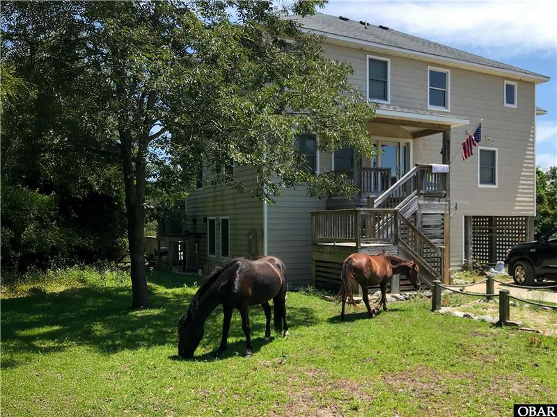 Welcome to the best of all worlds in Carova Beach! Featuring 5 bedrooms and 6.5 bathrooms, this meticulously maintained and updated home offers a unique combination of direct/easy walks to the beach, panoramic area and ocean views, peace and quiet privacy, waterfront canal lifestyle, and a wonderful open concept layout. Wild horses regularly visit the property, adding to the experience and charm.