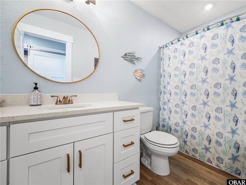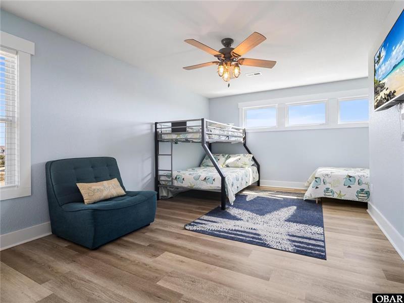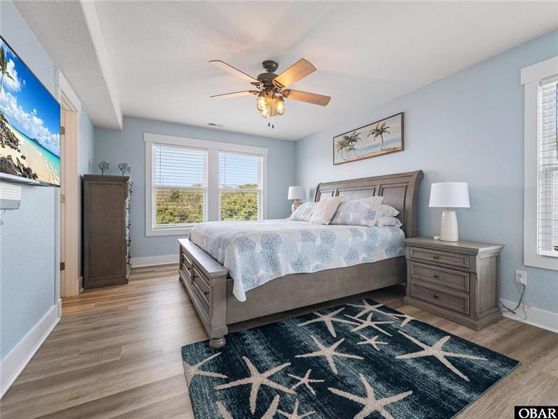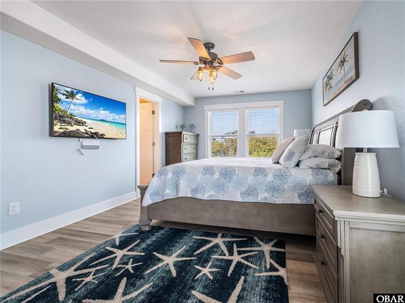Welcome to Splash of Lime! Built in 2022, this high performing 4 bedroom 4 bathroom Carova home offers a fantastic modern beach cottage layout with a bright, open floor plan and 2 king master suites. Inside, the front door opens into the great room followed by the dining area and a well appointed kitchen with granite countertops, stainless steel appliances, and 2 pantry closets with plenty of storage. A short hallway leads to the 1st king master with private bath, a bedroom currently setup with a twin-over-full bunk and separate twin bed, shared full bath and laundry room. Upstairs you’ll ...