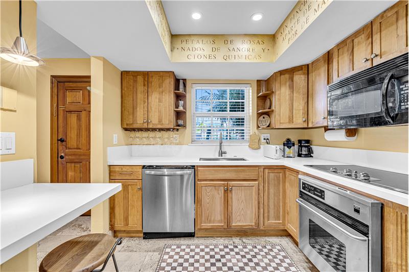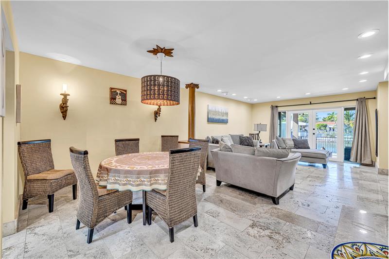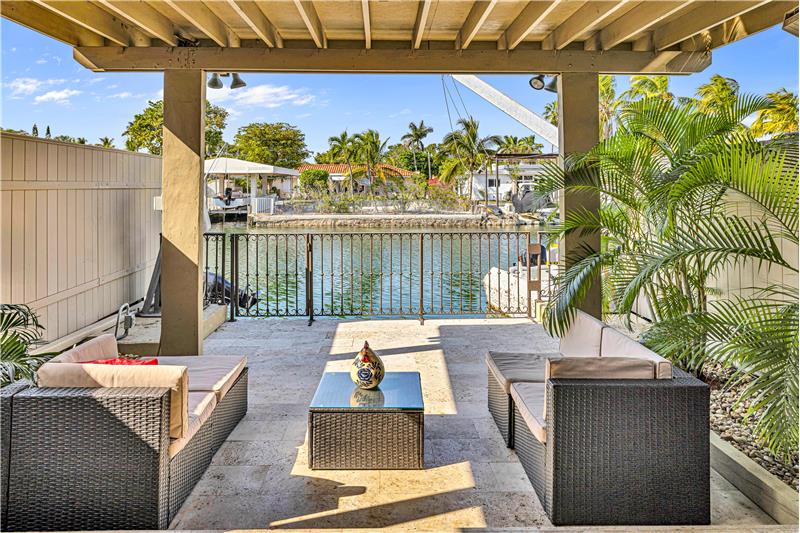 Discover waterfront living in this fully furnished & equipped townhouse by Keystone Point, North Miami. Enjoy breathtaking water views from your spacious decks & pergola in a peaceful setting. This move-in-ready home offers the perfect blend of tranquility and convenience, just minutes from pristine beaches, 1st class shopping, and dining destinations like Bal Harbour, Surfside, and Aventura. Beautiful French-laid travertine floors on 1st floor with open living space, an updated kitchen with new appliances, bedrooms feature high ceilings and wood floors & access to the 2nd floor deck for ...