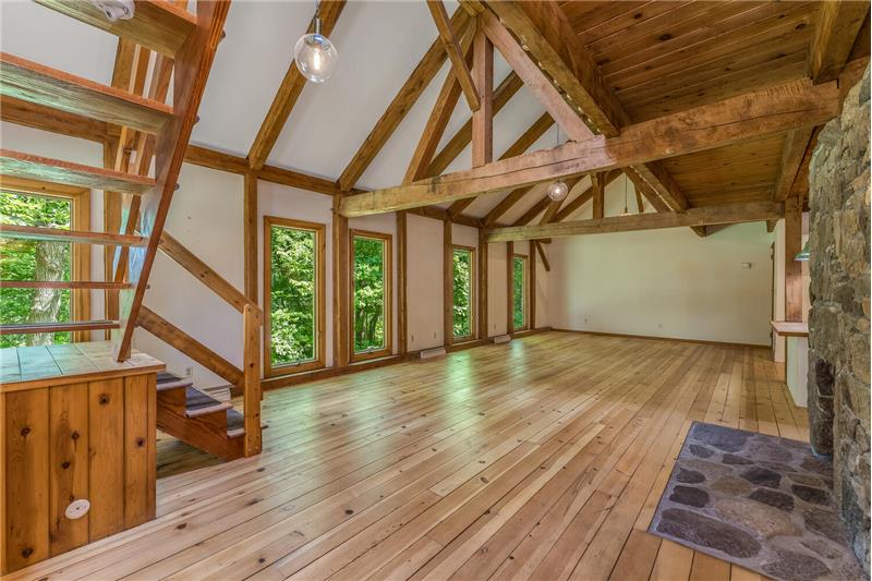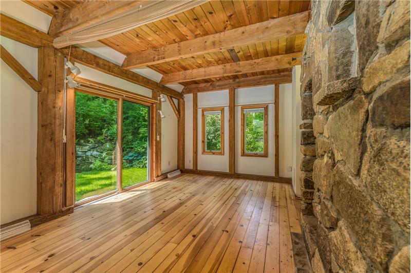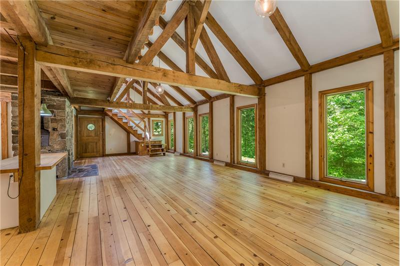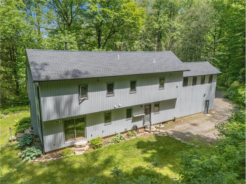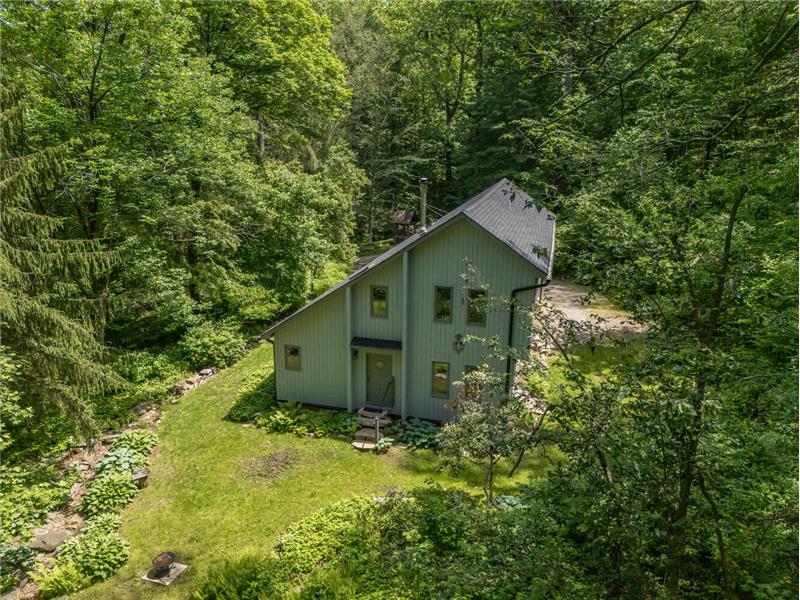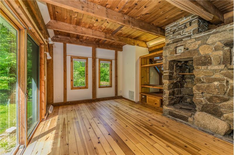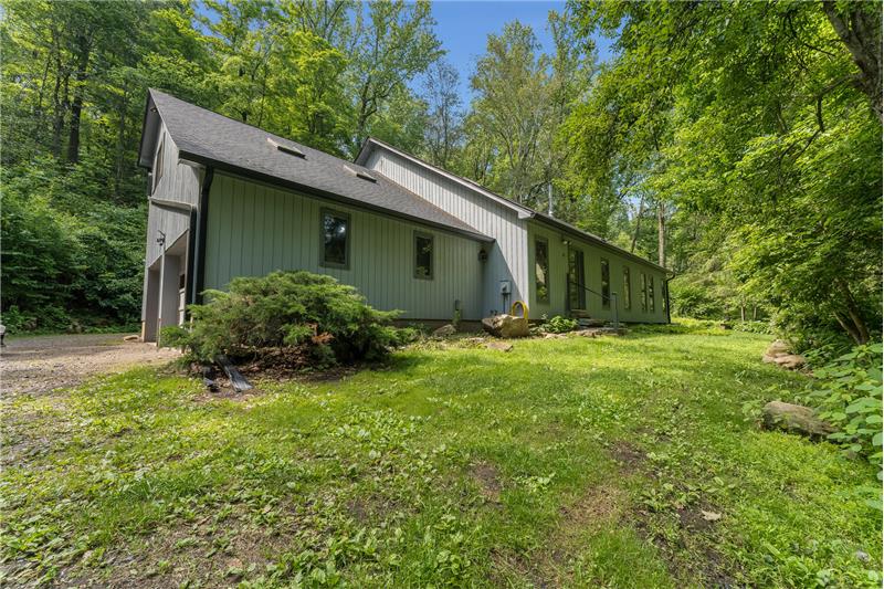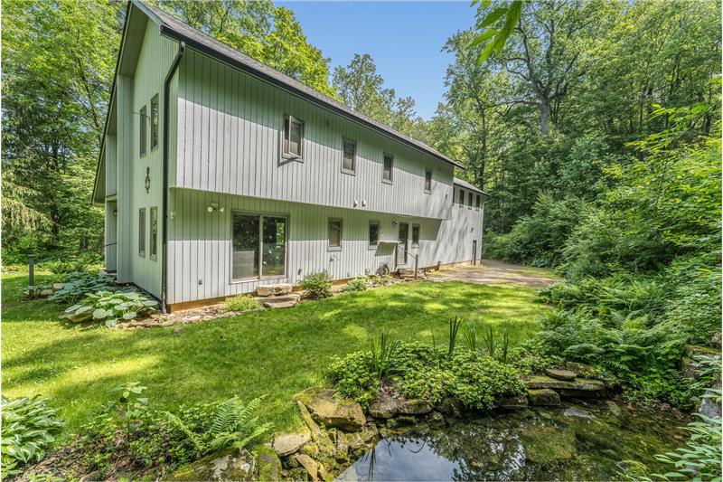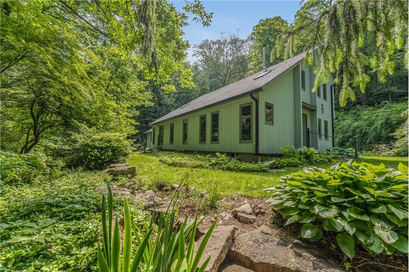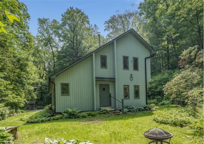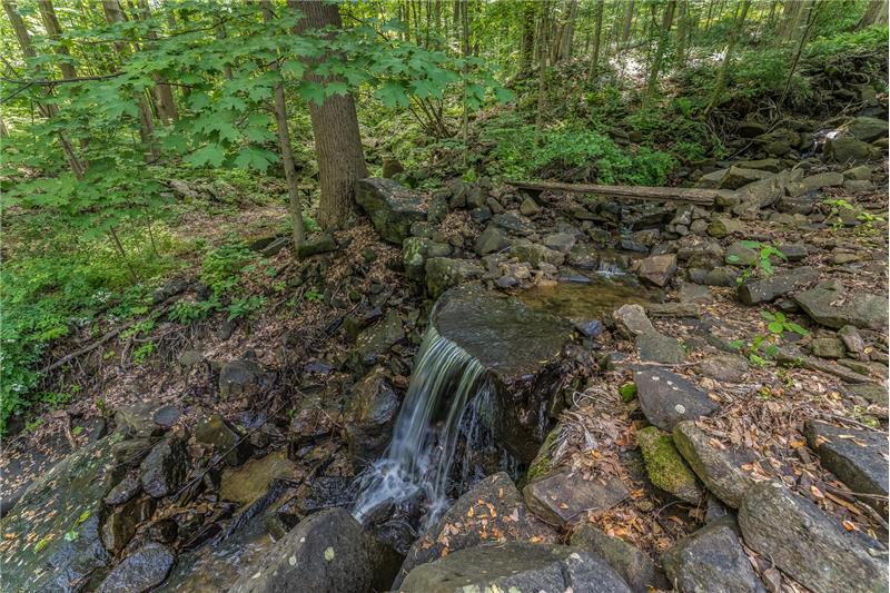 Stunning, unique property, offering breathtaking privacy. Live like you're off the grid at this custom post & beam home on 20+ woodland-assessed acres. Heavenly-sounding stream with waterfall flows peacefully toward a pond. Landscape features and fireplace built with stones native to the property. Economical geothermal heating system. Open, loft-like floorplan with beautiful natural wood. New roof and skylights. Don't miss this exceptional, earth-friendly home!