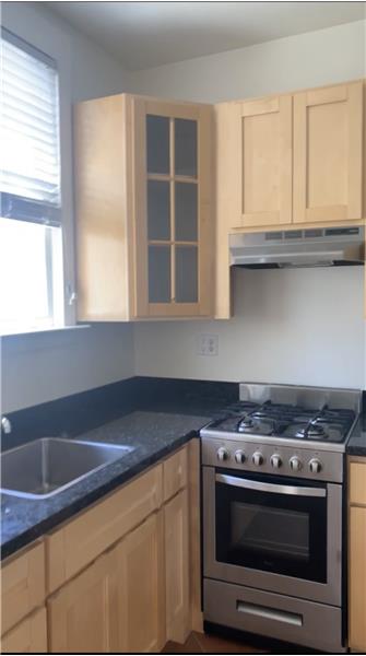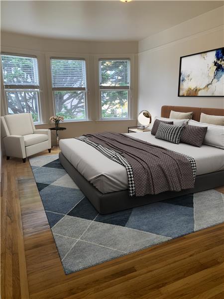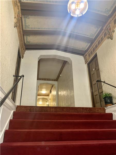BRIGHT and SPACIOUS Top Floor 1 bedroom apartment with remodeled bathroom and kitchen. There is hardwood flooring throughout the unit with gorgeous inlay work, the kitchen which is fully remodeled with lots of storage, stainless steel appliances! A large dining area which can also be used as an office. The unit is in the rear of the building, it gets plenty of sunlight and is quiet with a spacious bedroom and HUGE wardrobe space. There is an exceptionally large closet, plus plenty of storage space! The building is well managed and has a shared backyard with seating to relax in!