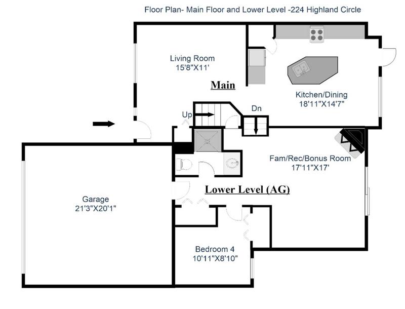 4 bedroom, 3 bath home, double attached garage, 2400 s.f. developed in Strathmore
