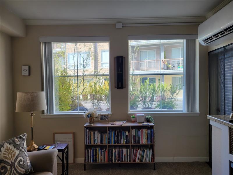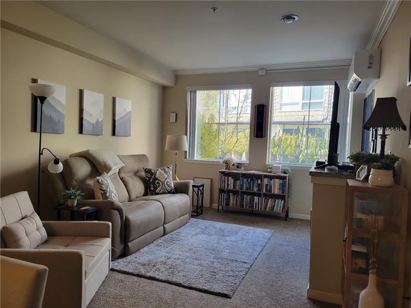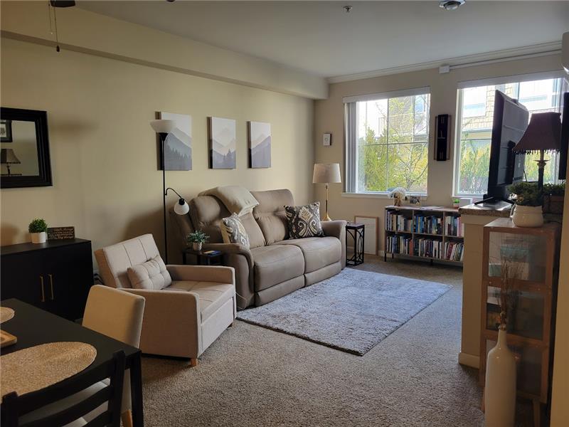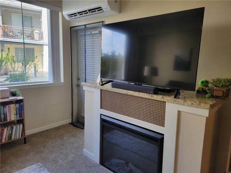 Welcome to urban living at its finest in the heart of Downtown Renton! This bright and airy 1 Bedroom-condo features high ceilings, and large windows that flood the space with natural light. Stay comfortable year-round with your own air conditioner, a rare find in the building! Enjoy a sleek kitchen with granite countertops and s-steel appliances, plus the convenience of in-unit laundry. Cozy up by the fireplace or relax on your Patio REVO 225 offers a full suite of amenities: secure parking garage, fitness center, rooftop terrace with stunning city views, BBQ area, hot tub, common lounges, an