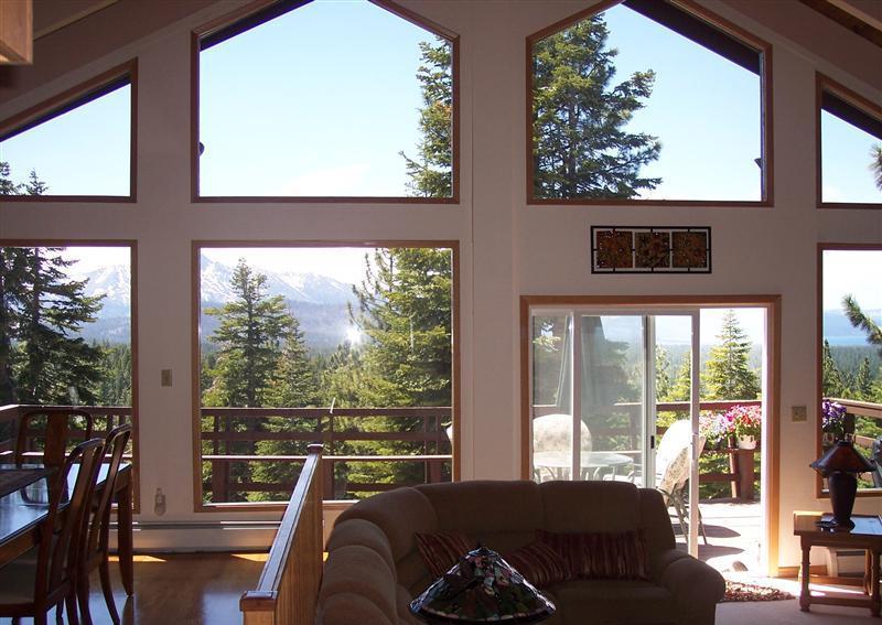Genuine Lake Tahoe Lake Views plus spectacular Mt.Tallac mountain views from this sweet condition, incredable value, upstairs living Montgomery Estates home. Great room living with dramatic vaulted open beamed ceiling and an entire wall of lake facing floor to ceiling awesome views. Slider right out to expansive view decking for your outdoor enjoyment. 4 bedrms + fmly rm/office or 5th bedrm, 2 baths & 2 car garage. Remodled kitchen, master bath, wood flooring & more. Best Lakeview Value!