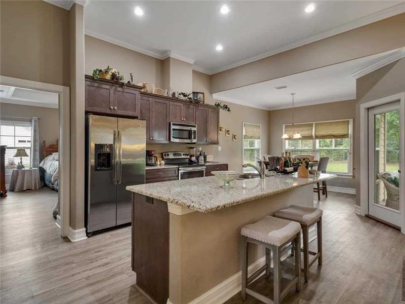 Relax in a 2015 home at The Flowers in Crawfordville. Enjoy today's popular decorative details with granite countertops in all wet rooms, stainless steel appliances, and not a bit of carpet in sight. Take a load off after a long day in the spacious living room with soaring ceilings and sleep beneath stylish and timeless tray ceilings in the master bedroom. This home begs for evenings of fall entertainment gathered around a crackling fire pit or curled up watching a movie while the cook whips up a snack at the huge kitchen island. Only 15 minutes from Capital Circle, this stunning Crawfordville