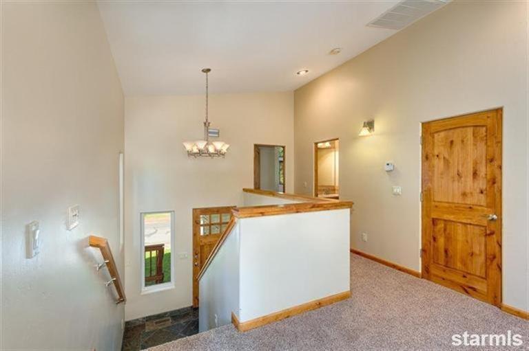 Newer Tahoe Home with a recent makeover. Home features fresh paint, new carpet, upstairs living, a vaulted ceiling, a great room with a gas fireplace, spacious kitchen with custom Alder cabinetry, granite counter tops with a Gas cook-top and a composite deck off the great room. Master Suite has a large walk-in closet, dual vanities, stall shower and jetted tub. Downstairs features 3 bedrooms, a full bath with dual sinks, a laundry room and direct access to the backyard. The outside of the home is landscaped with irrigation and offers a completely fenced backyard with double gate for boat or tr