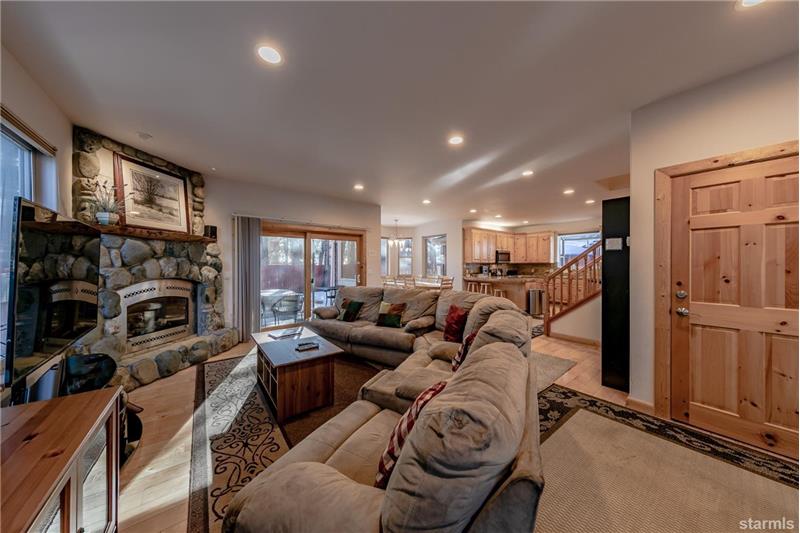 Beautifully finished, this newer, fully furnished, contemporary home features custom knotty pine cabinets, granite counters and maple wood floors. The spacious entry area leads to an expansive great room with rock fireplace and gas insert, large dining area with Bay window and an open kitchen with breakfast bar.The kitchen has an abundance of cabinets and a garden window. This home has three bedrooms, two and a half bathrooms, a game room and a two car garage. The bedrooms all have vaulted ceilings and there are four skylights in the master bedroom and bathroom. The master bedroom and living/d