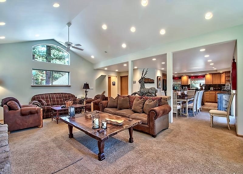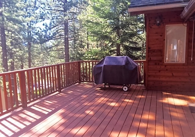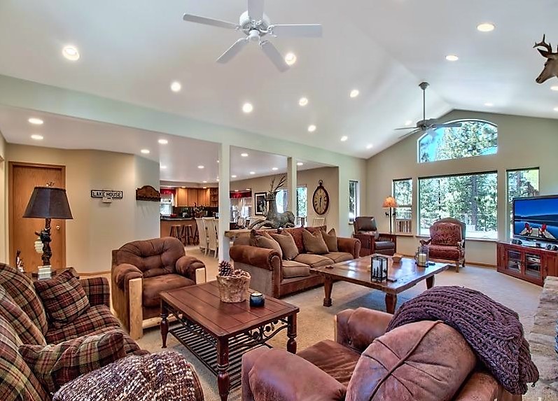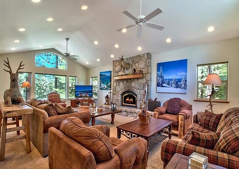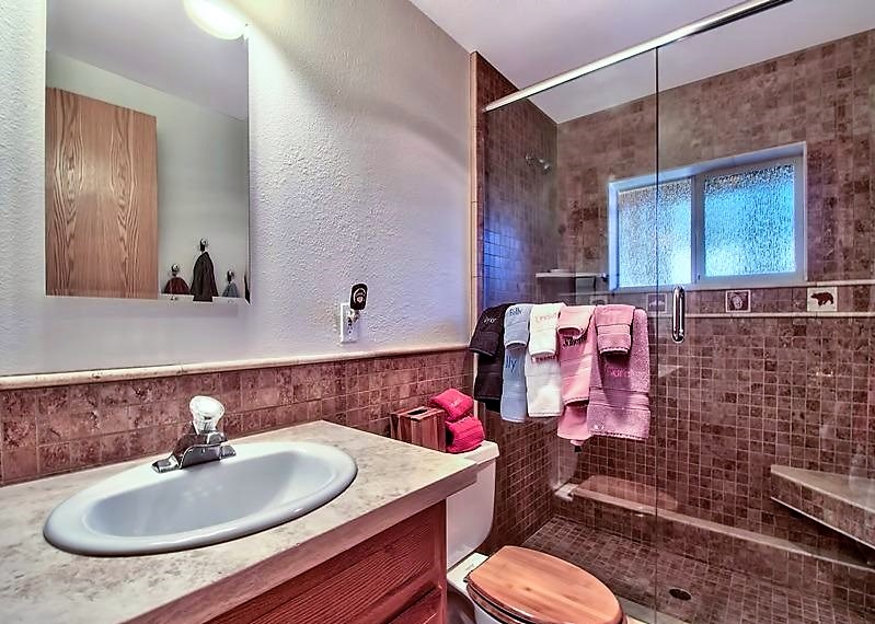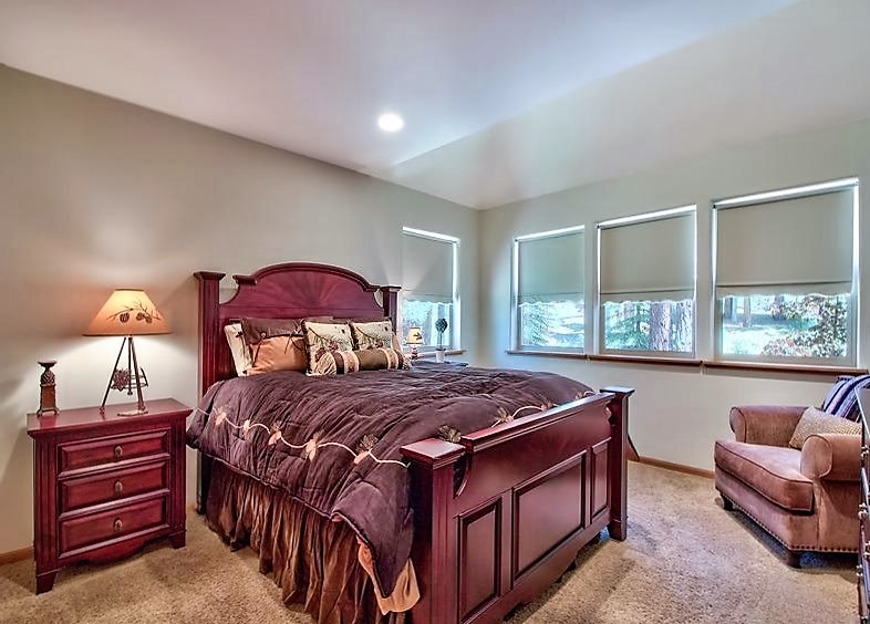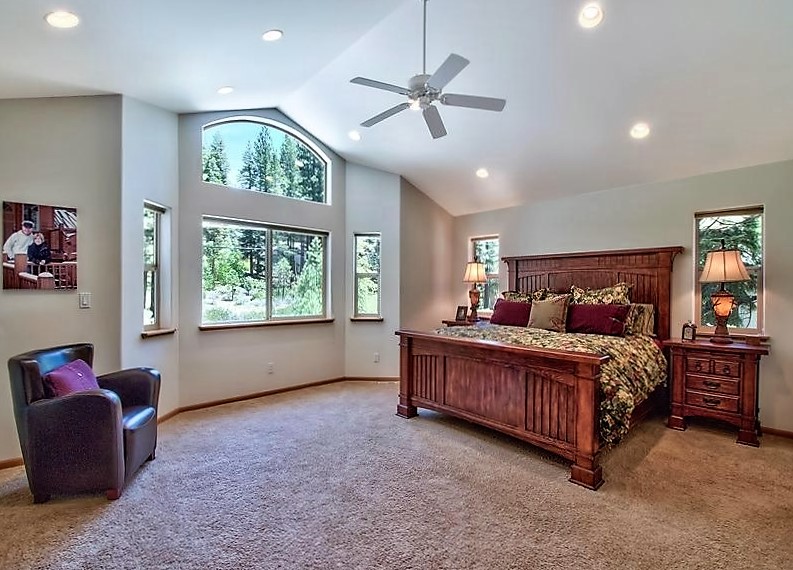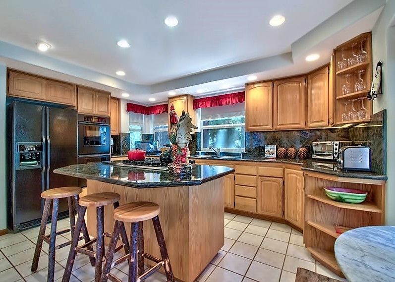 Gorgeous space and warm feel inside and out for this Montgomery Estates, natural Cedar wrapped Custom four bed room, three bath home with large family room. On a spacious 8000 sq. ft. quiet parcel, this beautifully decorated and furnished home is 3183 square feet plus an additional 1,000 square foot bonus area for hobby, work-out, game room, etc. Spacious open and inviting floor plan, vaulted ceilings, granite fireplace, gourmet kitchen with granite slab counter tops, outstanding large master bed room suite and master bath. Wine cellar, tremendous storage, lots of decking for outdoor living. T