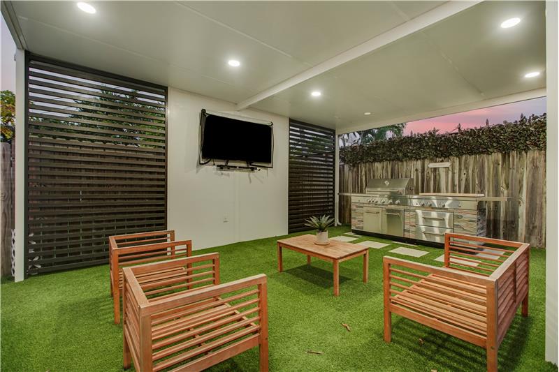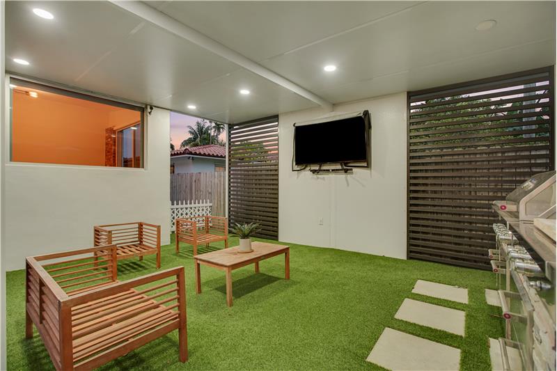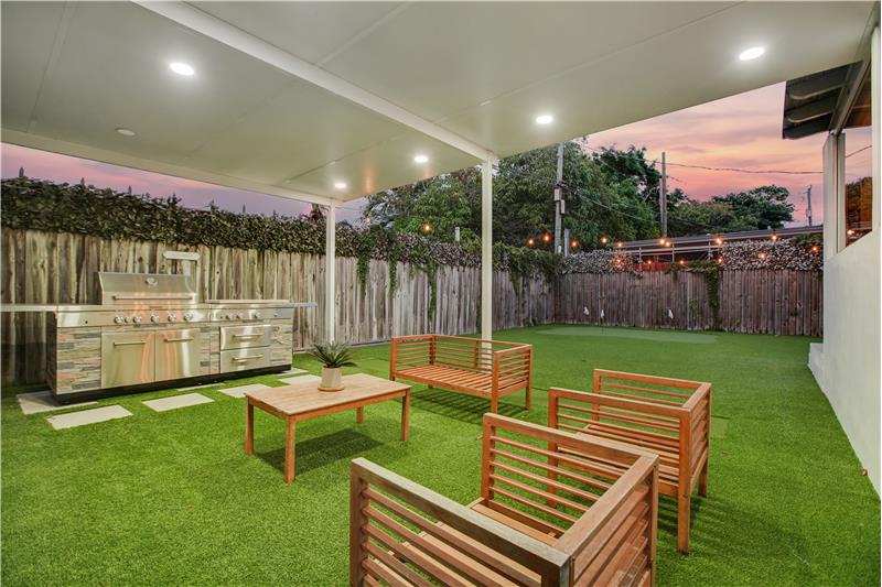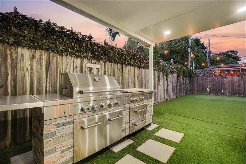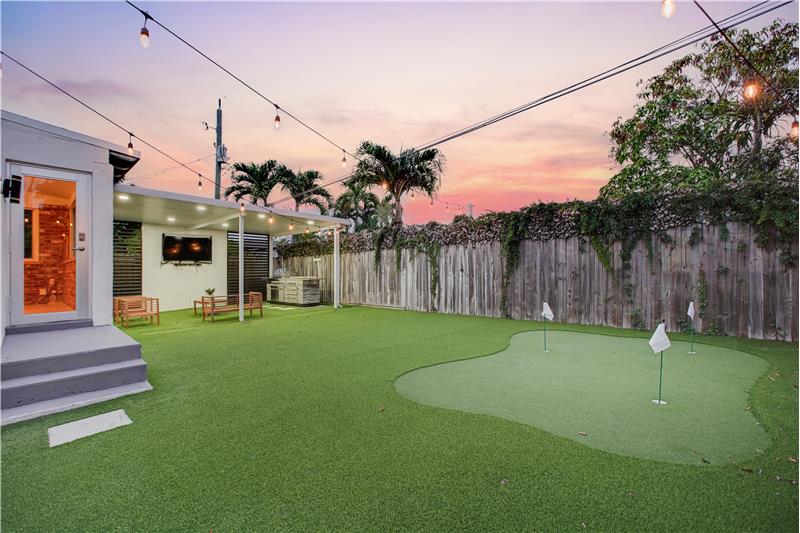 This light-filled 2 bedroom / 2 bathroom home with bonus room spans 1,693 SF with a stylish open layout, soaring ceilings & modern finishes throughout. The chef’s kitchen impresses with top-tier appliances, butcher block counters & custom cabinetry. Spacious bedrooms, big closets & large principal suite with dual closets & full ensuite bathroom. The bonus room offers endless possibilities. Oak wood flooring. Fenced yard with pergola, putting green & BBQ perfect for outdoor entertaining. 2024 roof, impact windows/doors, updated plumbing & electric. Covered carport, extra storage & more!
