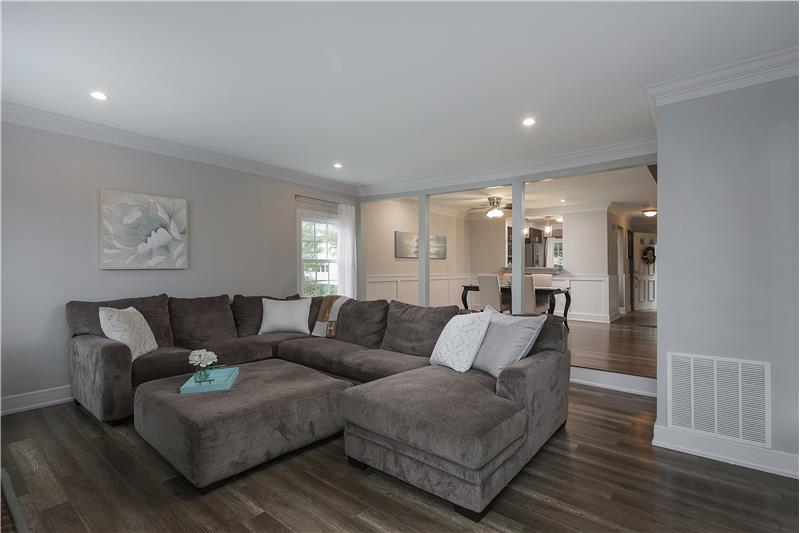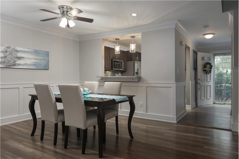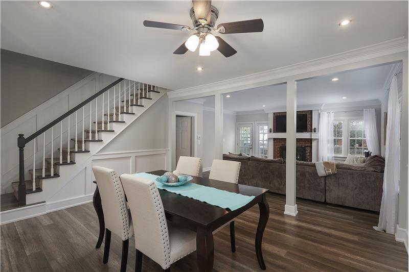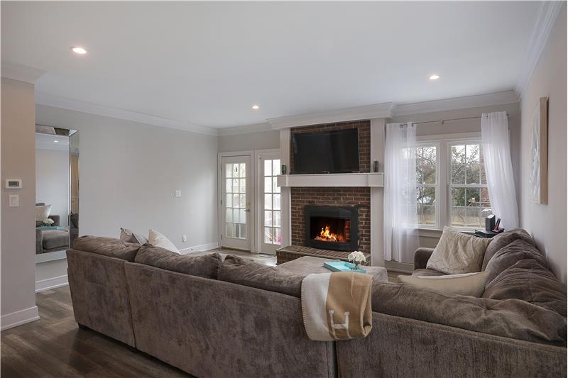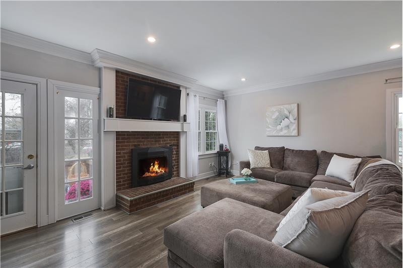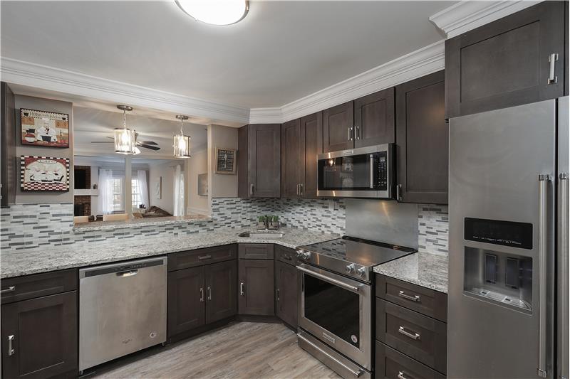Open Floor plan end unit townhouse updated throughout in 2018! The Kitchen has new cabinets, granite countertops, laminate wood flooring (throughout main level), backsplash, and new appliances including garbage disposal. Open floor plan Dining Room and Living Room. The Living Room has a wood burning fireplace (with blower) and has a brick surround with TV wall mount over the mantle. Main Bathroom and Half Bathroom completely renovated in 2018. Finished Basement with Family Room, wet bar, built-ins, Half Bathroom and Office.