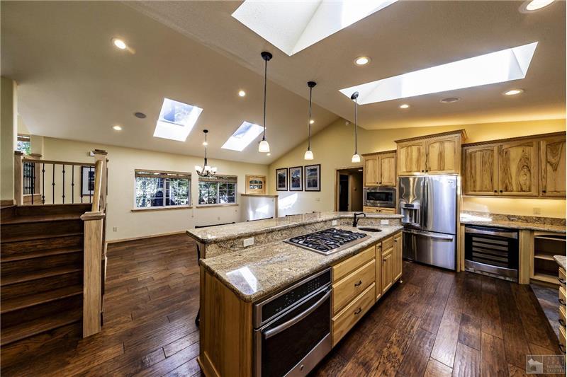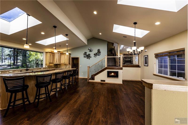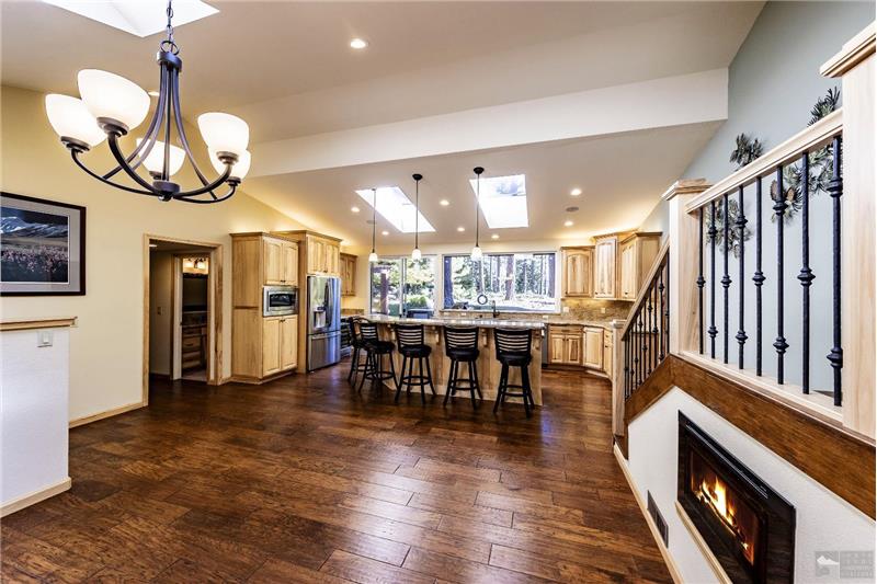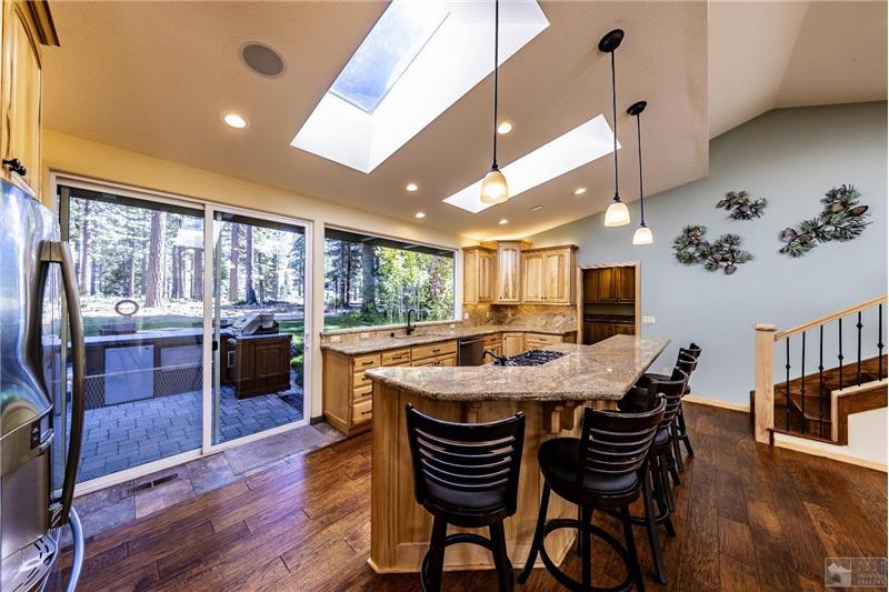 Walk in and say Wow!. The huge picture window and oversized slider faces the landscaped backyard and stunningly beautiful forest land with an abundance of hiking and biking trails. The yard features a paving stone patio and even has a barbeque island, fire pit and a hot tub. Located in the much sought after Angora Highlands neighborhood this is a rare find. Inside is a beautifully upgraded kitchen with custom Natural Hickory Cabinets, granite counters. hardscaped hickory floors and an abundance of storage and counter space.