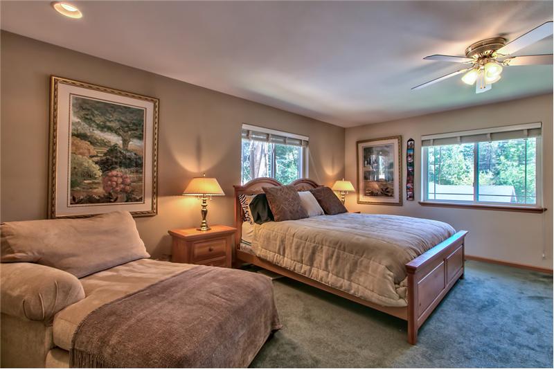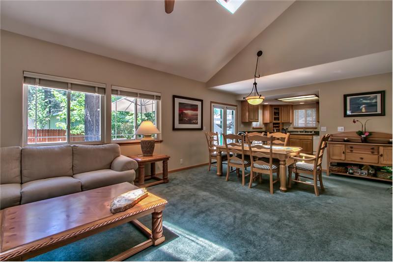 We're at the Lake! That's what you'll say with your stunning Turn-Key Tahoe home. This is a place for real family togetherness. All the perks you would want. Fully furnished, spacious great room, spectacular Tahoe etched doors, granite, tile, ceiling fan in every room, beautifully landscaped, oversized 2 car garage and private setting. This home is Pristine and ready to be your new Tahoe home. Enjoy the hard to find downstairs living and what a delight having 3 Full Baths. The multiple Skylights allow for plenty of natural light. Situated on a sunny lot in a great neighborhood. The river i