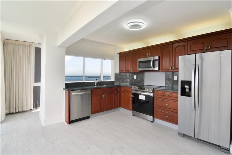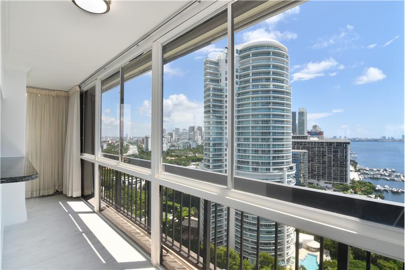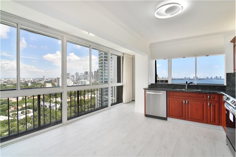Fantastic NE Bay views towards Miami Beach and Port of Miami, Key Biscayne, the Brickell Financial District, and with City of Miami views extending to Coral Gables that make this Corner apartment unique. Wrap-around enclosed balcony with the latest waterproof vinyl wood floors are throughout unit area. Tastefully renovated with stainless steel appliances and washer/dryer. This is a Full amenities building with BBQ area, pool with bay views, and tennis courts.