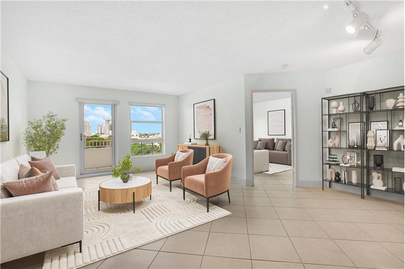 Enjoy beautiful skyline views of Coral Gables from this corner 2 bedroom / 2 bathroom unit at sought after Gables Terrace Condominium. One of the few units available with a terrace. Bright unit with a thoughtful split bedroom floorplan and all tile flooring throughout. Open kitchen with all stainless steel appliances. Ample storage with newer closet doors. Walk-in closet in master. Washer & dryer in unit. Covered assigned parking space. The building’s amenities include on-site security, pool, gym, meeting room & guest parking. Central location in the Coral Gables area, on Douglas Road, sh ...