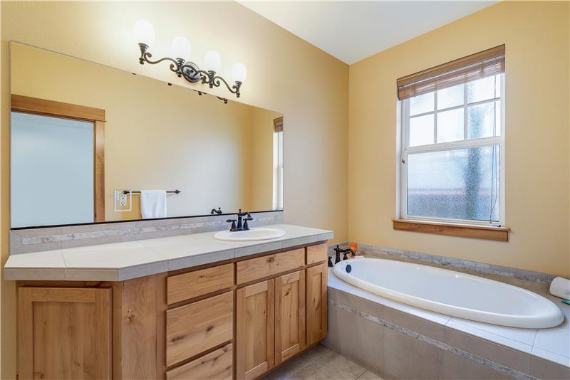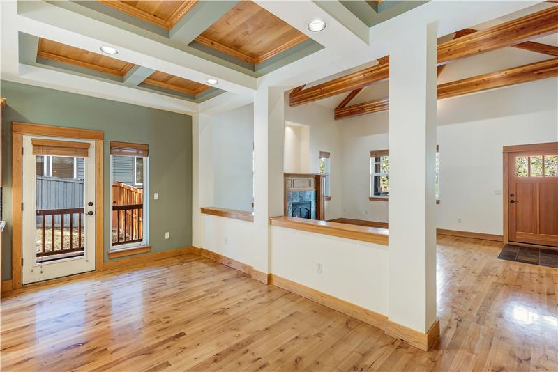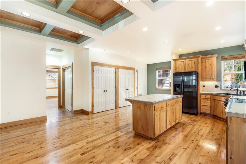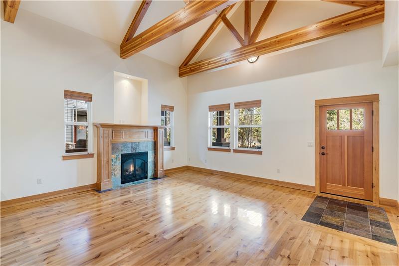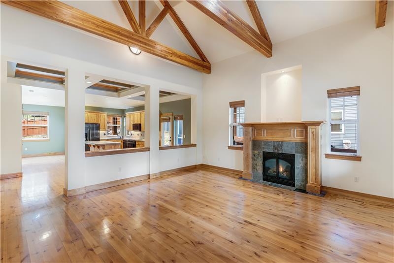 Custom built with hardwood floors, knotty alder cabinetry, wood trim and vaulted ceilings with wooden trestles, this warm & inviting Craftsman in NorthWest Crossing has an open layout with a gas fireplace in the living area, a dining area with deck access. The main-level primary suite has hardwood floors, tile flooring in the bathroom, a walk-in shower, soaking tub and a walk-in closet. Two add'l bedrooms and a full bath complete the floor plan. Outside, there is a covered wrap-around deck and private, fenced back yard with fruit trees, old growth conifers and a gardening area.