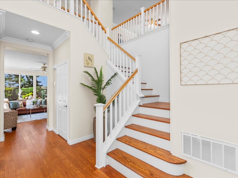 HOME SOLD 12/1/2025 - You'll love living in this well-maintained home in the sought-after community of La Costa Valley, with easy access to The Forum Shops, the Omni Resort La Costa and golf, major commuting routes, dining options, with Carlsbad beaches just minutes away. You’ll appreciate the close proximity by walking trail (steps from the home) to the Valley Club where you can enjoy the heated Junior Olympic-sized pool, spa, fitness room, tennis and pickleball courts, clubhouse, and social events to enhance your lifestyle. This beautiful home features 5 bedrooms (4 upstairs and 1 on th ...