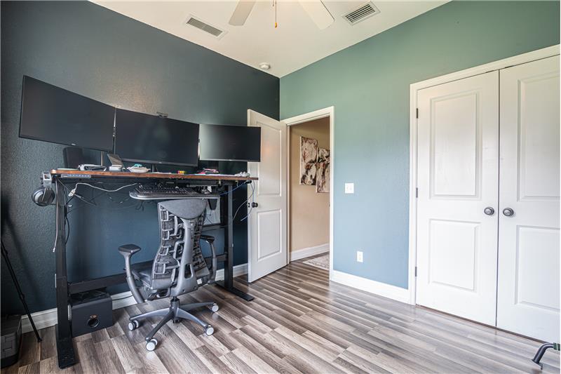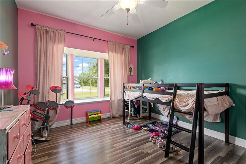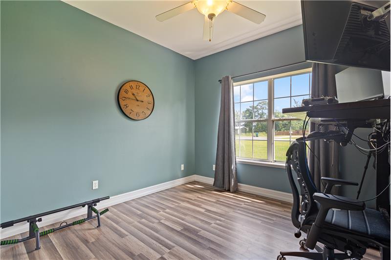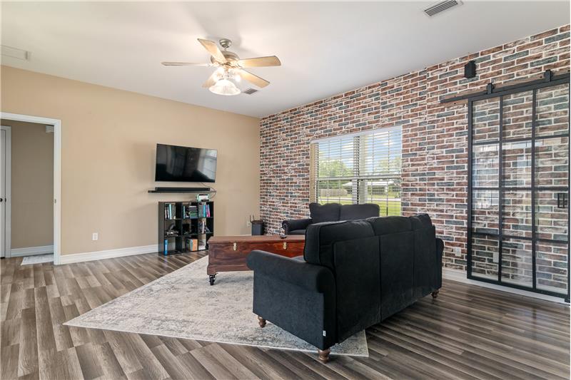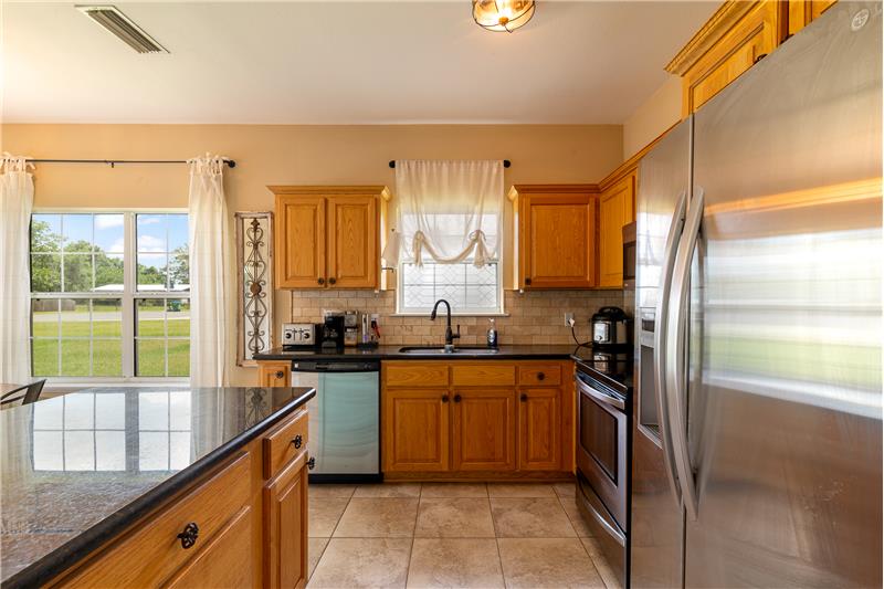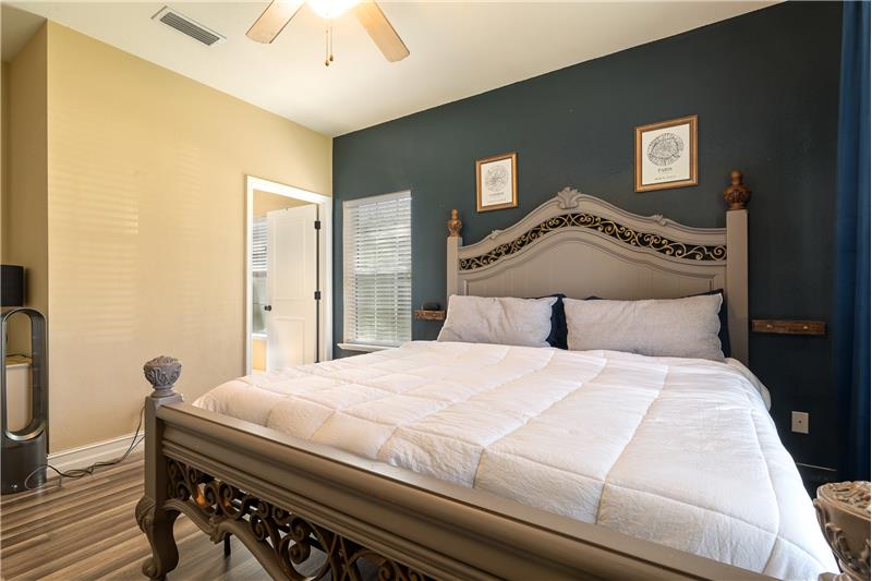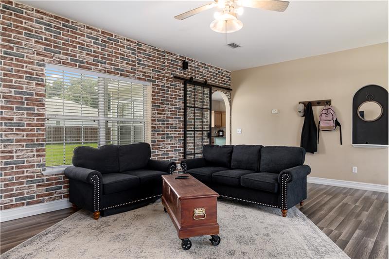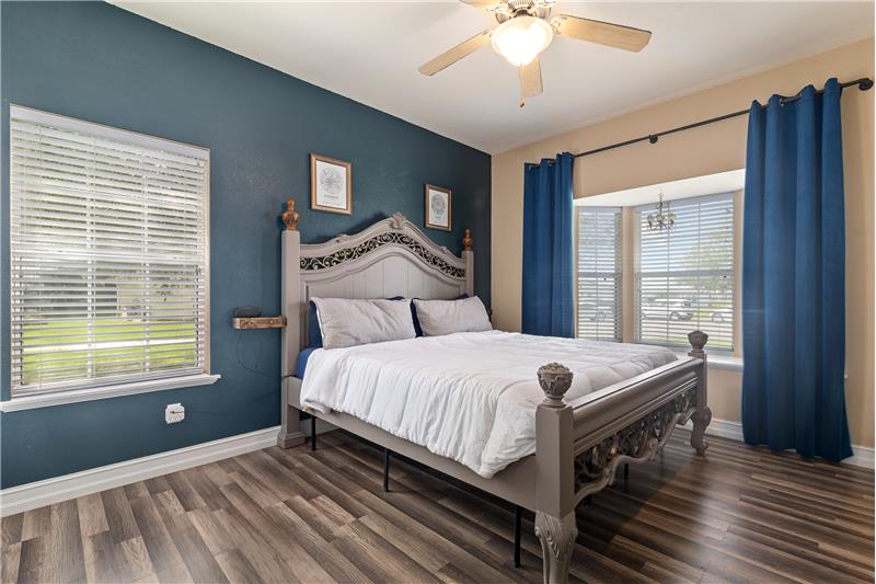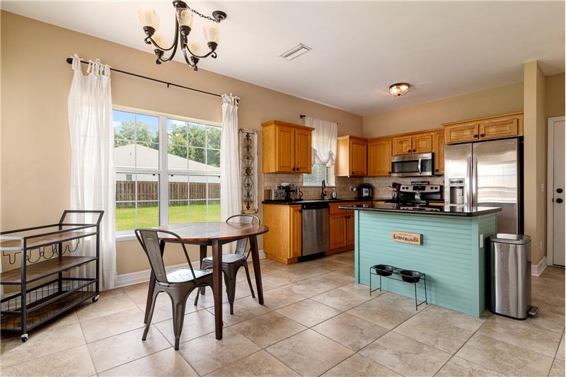Charming contemporary style home on spacious lot in the Quail Run neighborhood. Three (3) bedrooms, two (2) full bath with split floor plan. Front porch entry with French doors opening into the Great Room. Plenty of natural light throughout this home. Updated laminate flooring & high ceilings. You will enjoy the large eat-in kitchen with stainless appliances, center island, pantry, plenty of cabinet space and granite counter tops. Owners suite with a wonderful bay window, ceiling fan, spacious luxury bath with tiled shower, and large walk-in closet. Inside laundry closet with washer&dryer