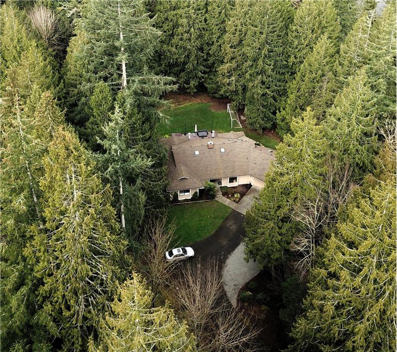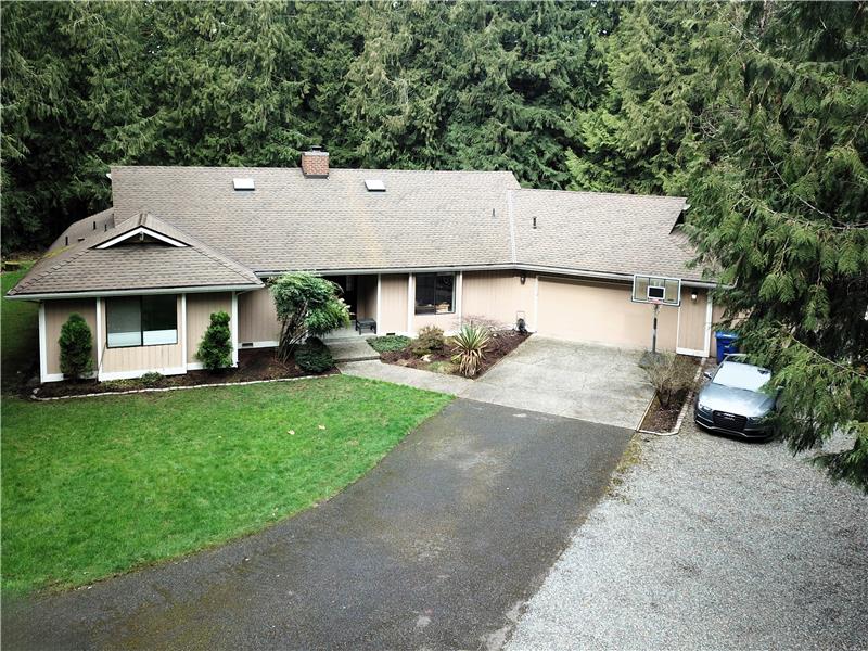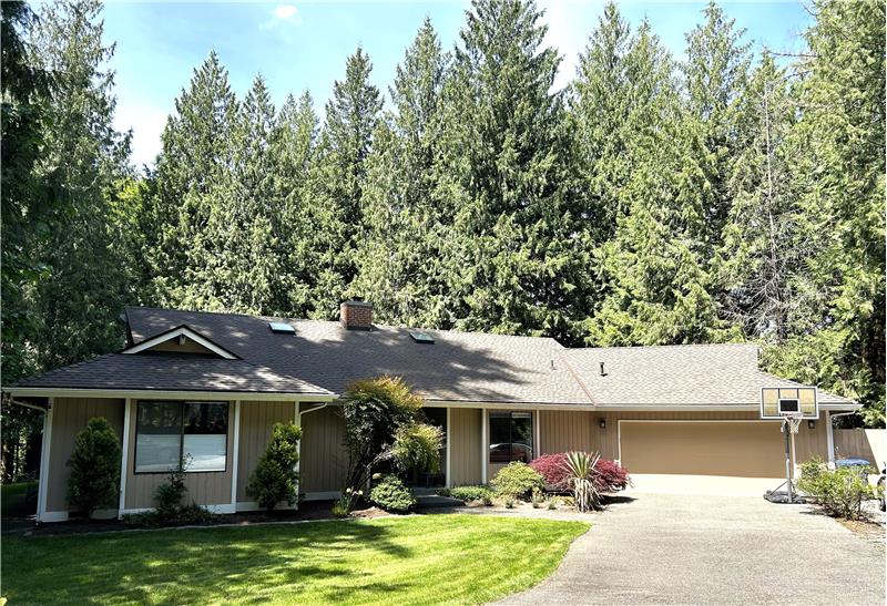Private one story Sammamish home tucked away on 1.42 acres.
