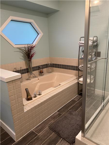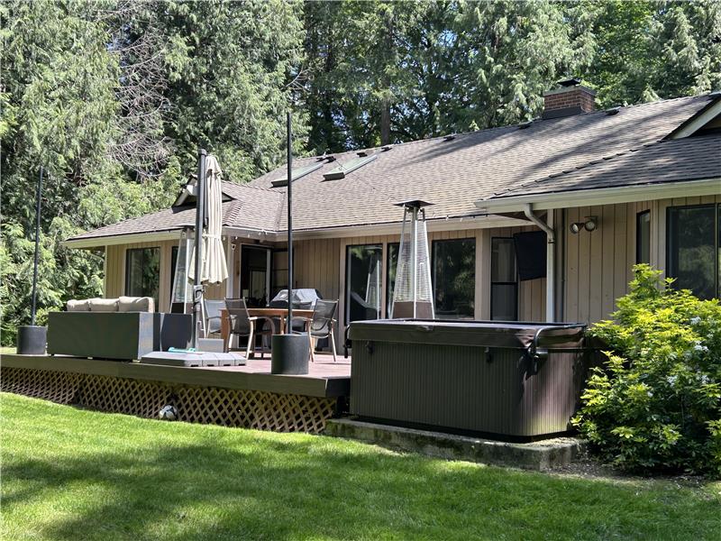 Private Northwest Retreat on 1.42 Acres Beautifully maintained 2,000 sq ft single-level home on a private 1.42-acre lot. Features include new plank hardwood floors, updated bathrooms, and a modern kitchen with large island and stainless steel appliances. The open layout offers views of a serene backyard—perfect for morning coffee or spotting local wildlife. Enjoy a hot tub on the spacious deck, ideal for relaxing or entertaining friends and family. The oversized 680 sq ft garage includes a workspace and extra storage. Plenty of room for an RV, boat, or additional vehicles. Invisible fence kee
