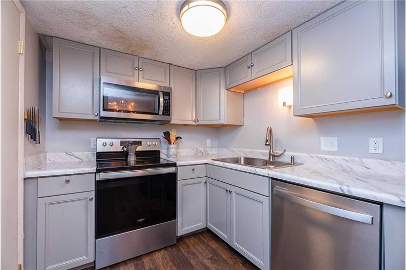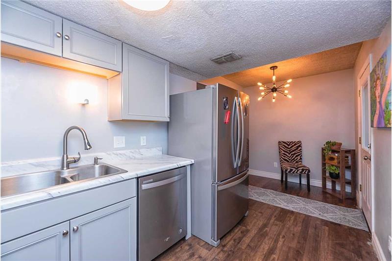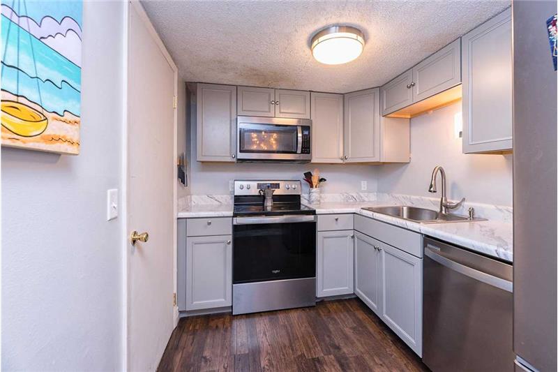 Tucked towards the end of a quiet street, this move-in ready townhome lives large! With two bedrooms and one & a half bathrooms, this home features a combo living room and dining room with a wood burning fireplace, updated flooring, cabinets and stainless steel appliances in the kitchen, indoor laundry room, totally remodeled bathrooms (upstairs & down!) and fresh interior paint throughout. And with the 2019 Roof & HVAC and 2021 Water Heater, this home will be maintenance free for years to come. This ideal location is convenient to shopping, schools, parks and entertainment for home buyers or