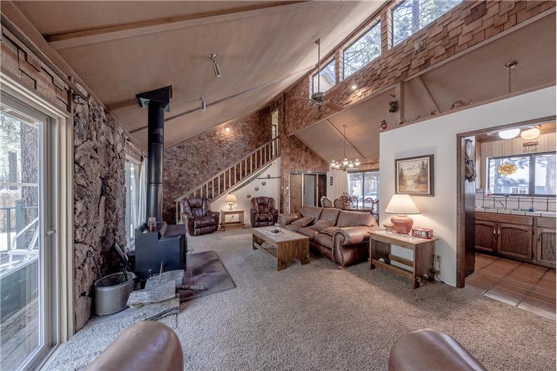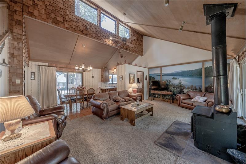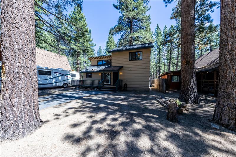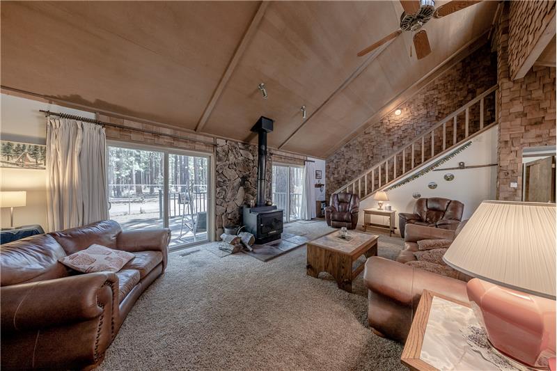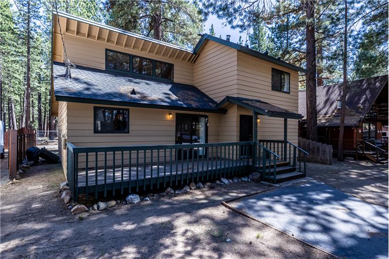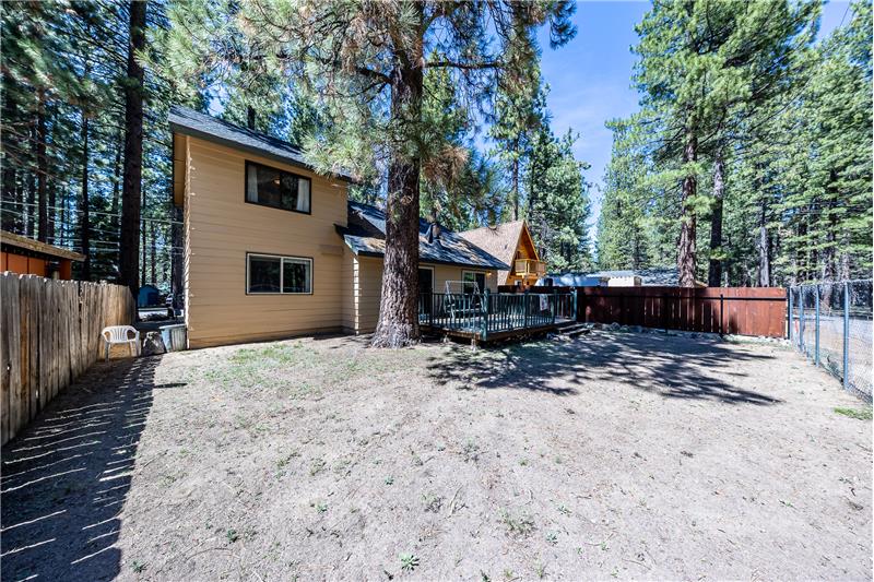 Location, location, location! This cute Tahoe Mountain Cabin has a peaceful location backing to Forest Service Land. This home features an open floor plan, with vaulted ceilings downstairs, a freestanding wood burning stove, tiled kitchen and bathrooms,1 bedroom and bathroom downstairs and 2 more bedrooms and another bathroom upstairs and a laundry room. It has a newer roof. The cabin has a fenced backyard with nice deck overlooking the forest service land with a gate out to the open land for quick access for all your toys. The home comes furnished per inventory list. Centrally located in town