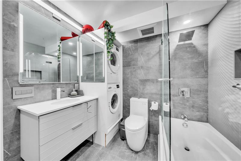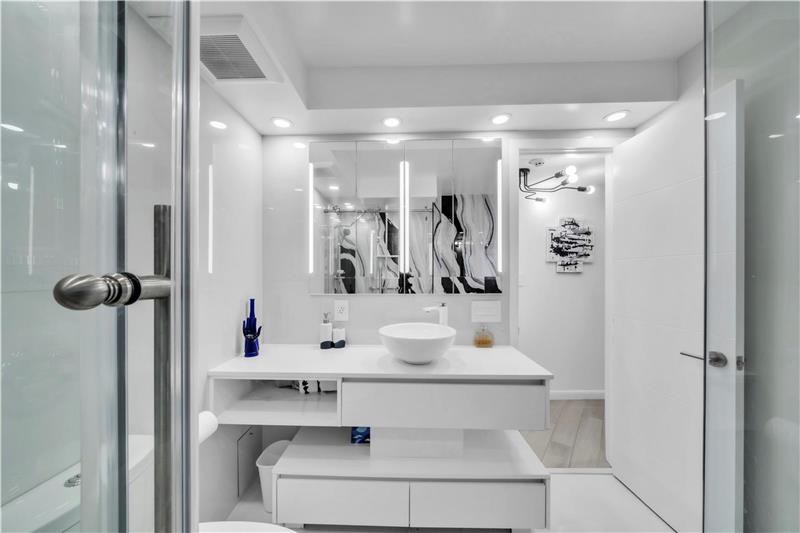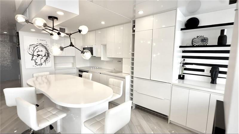 Newly renovated and designer-decorated apartment featuring brand-new finishes and high-end appliances. Comes fully furnished with high-quality, tasteful furniture perfect for hosting or relaxing. Also comes with large, south-facing balcony with spectacular Intracoastal views. Kitchen is finished with tile surfaces and top-of-the-line appliances: Liebherr refrigerator, Bosch dishwasher, Whirlpool cooktop, oven, and microwave. Bosch washer and dryer located inside apartment bathroom. A stretch ceiling with white gloss in the living room makes apartment feel spacious and dazzingly lit with n ...