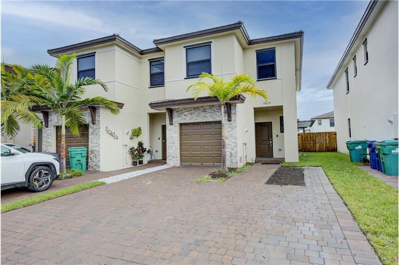 Allow this spacious twin-home to meet all of your living and comfort needs, from enough space to fit 5 vehicles parking space and a pool. This amazing place has a half bath downstairs, an open kitchen concept with brand new finishes. custom tile floors downstairs and new carpet upstairs. This beautiful home built in 2020 is in immaculate condition with pergola and extended floor in the backyard with a fan and ready for entertaining. For more information: 305.283.0872