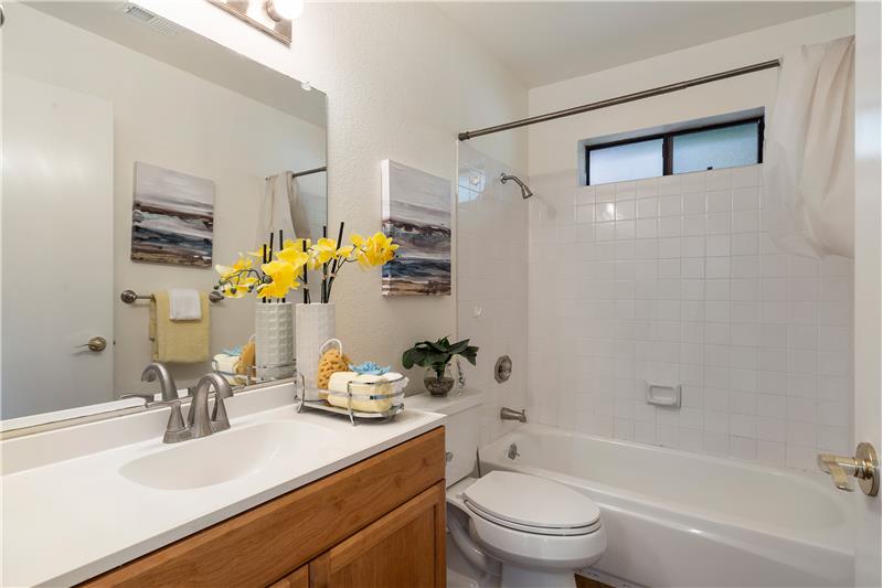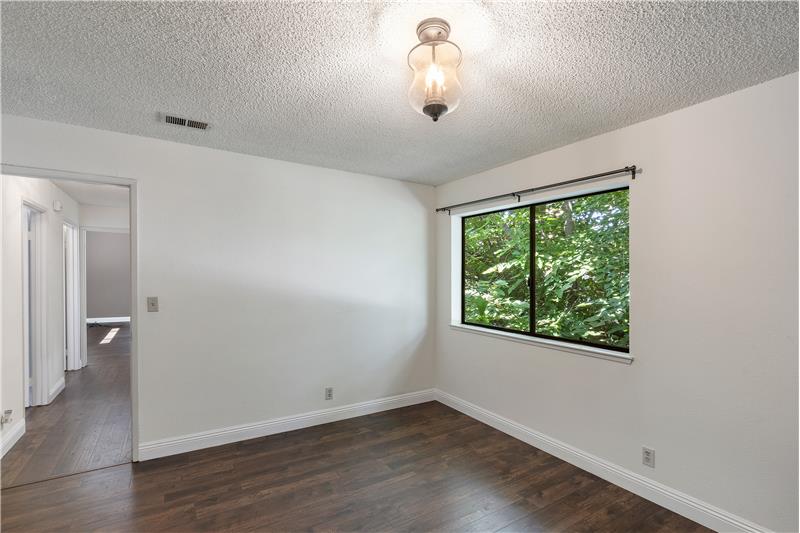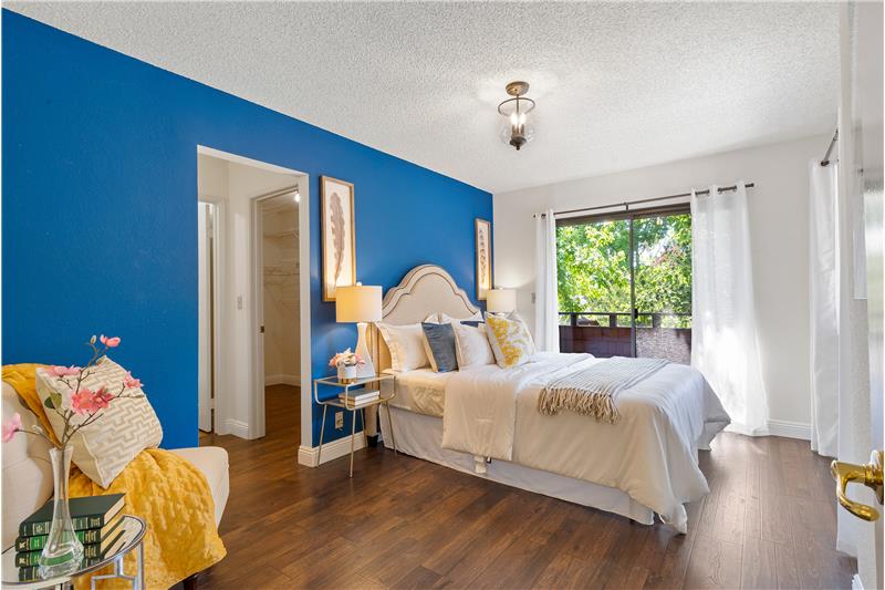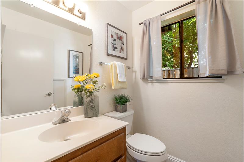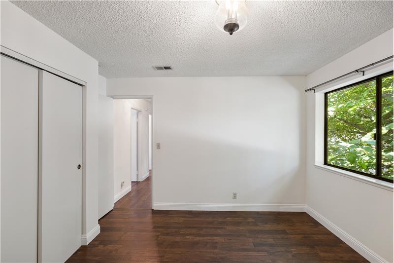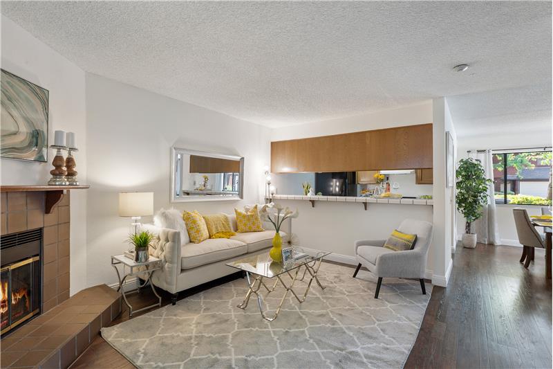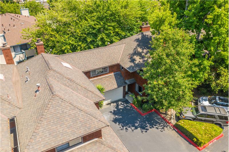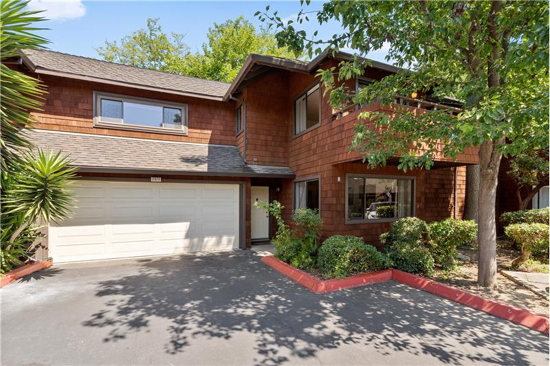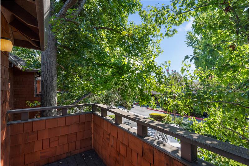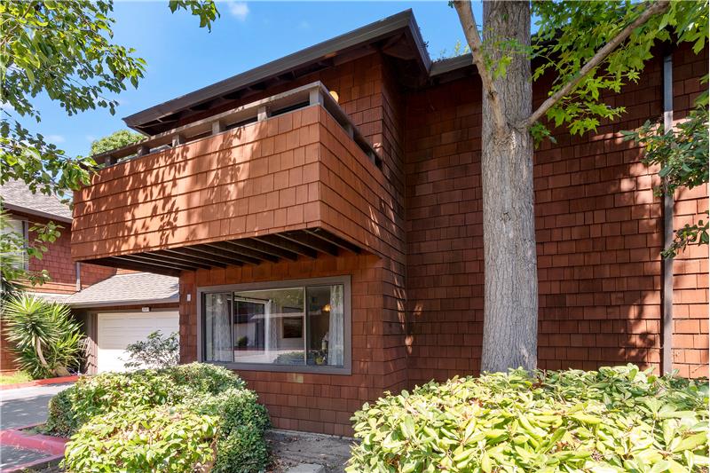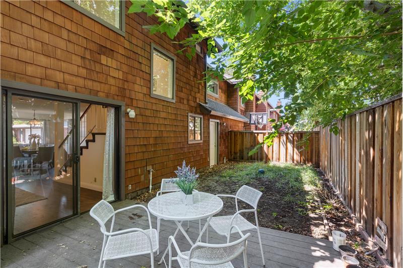 This delightful townhouse has a relaxed ambiance with mature shade trees, a large deck, and wood shingle siding. Three large bedrooms, a balcony, two bathrooms, and a laundry room upstairs provide enjoyable private space for your family. A semi-open living room, dining room, kitchen, a half-bath, and a large deck on the ground floor create a wonderful living space. Mature shade trees and space for a lawn and/or garden let you create your own outdoor oasis. Walk to cafes, parks, and schools.
